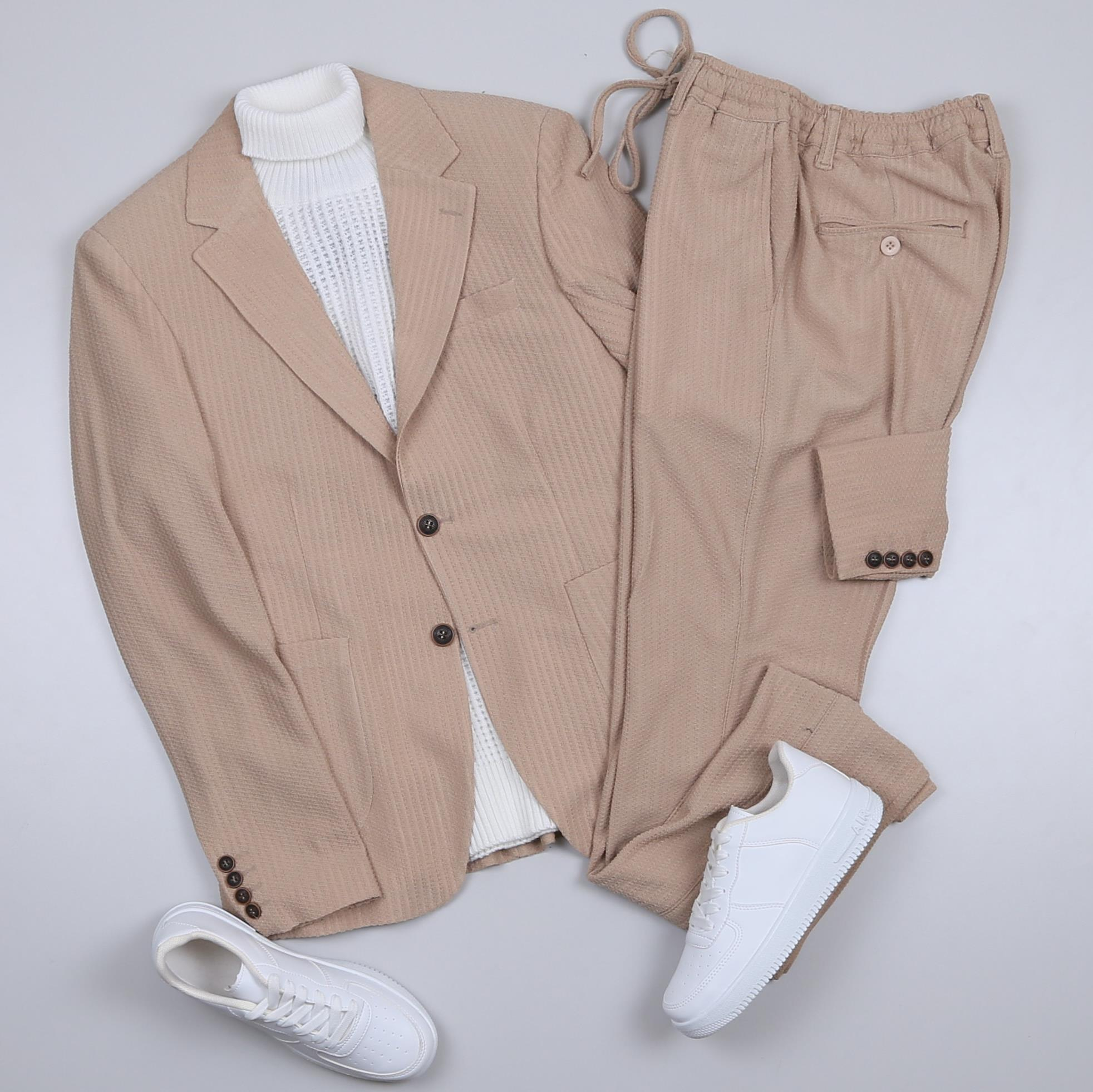 Bej Örgü Desenli Spor Takım Elbise Kombini