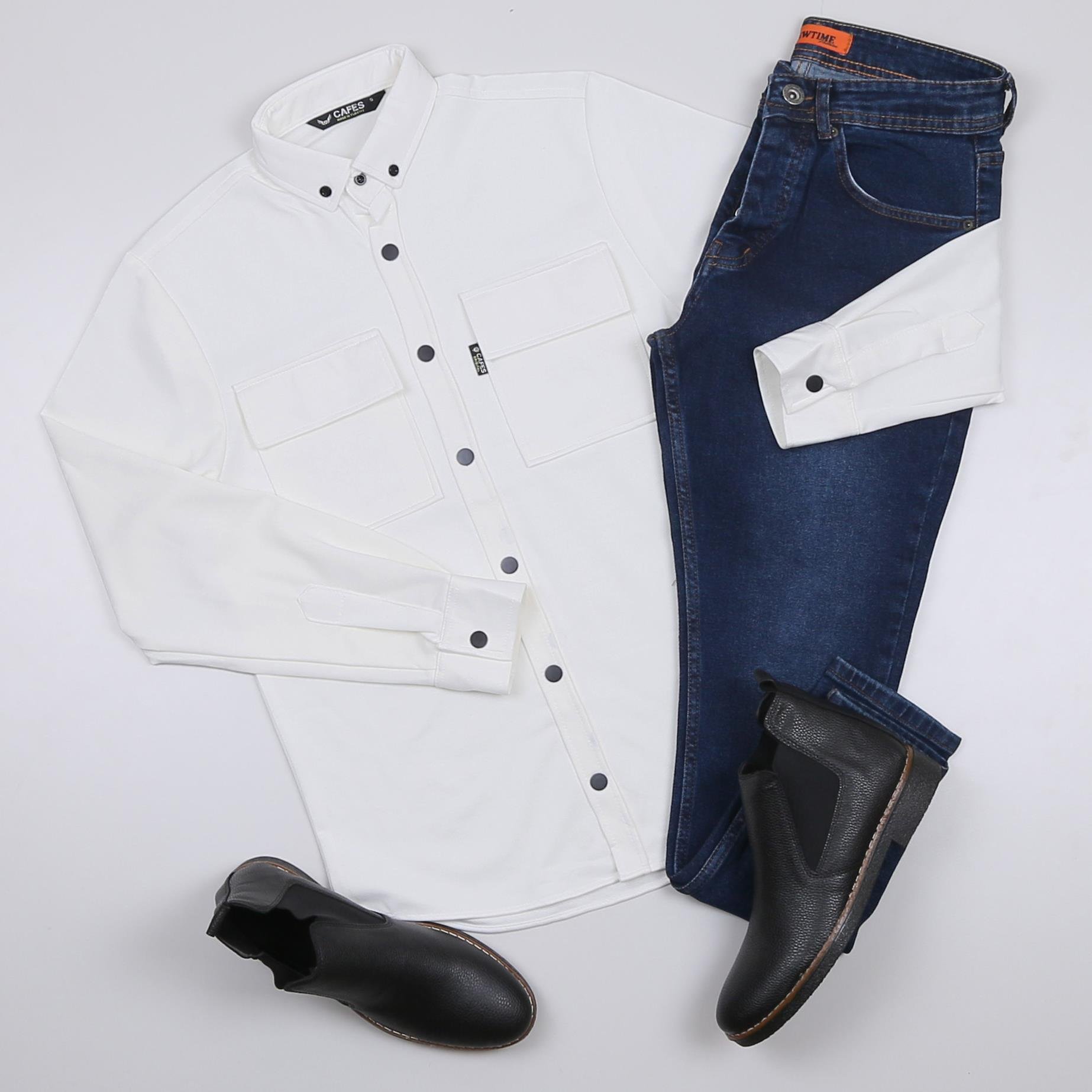 Beyaz Cepli Gömlek Pantolon Bot Kombini