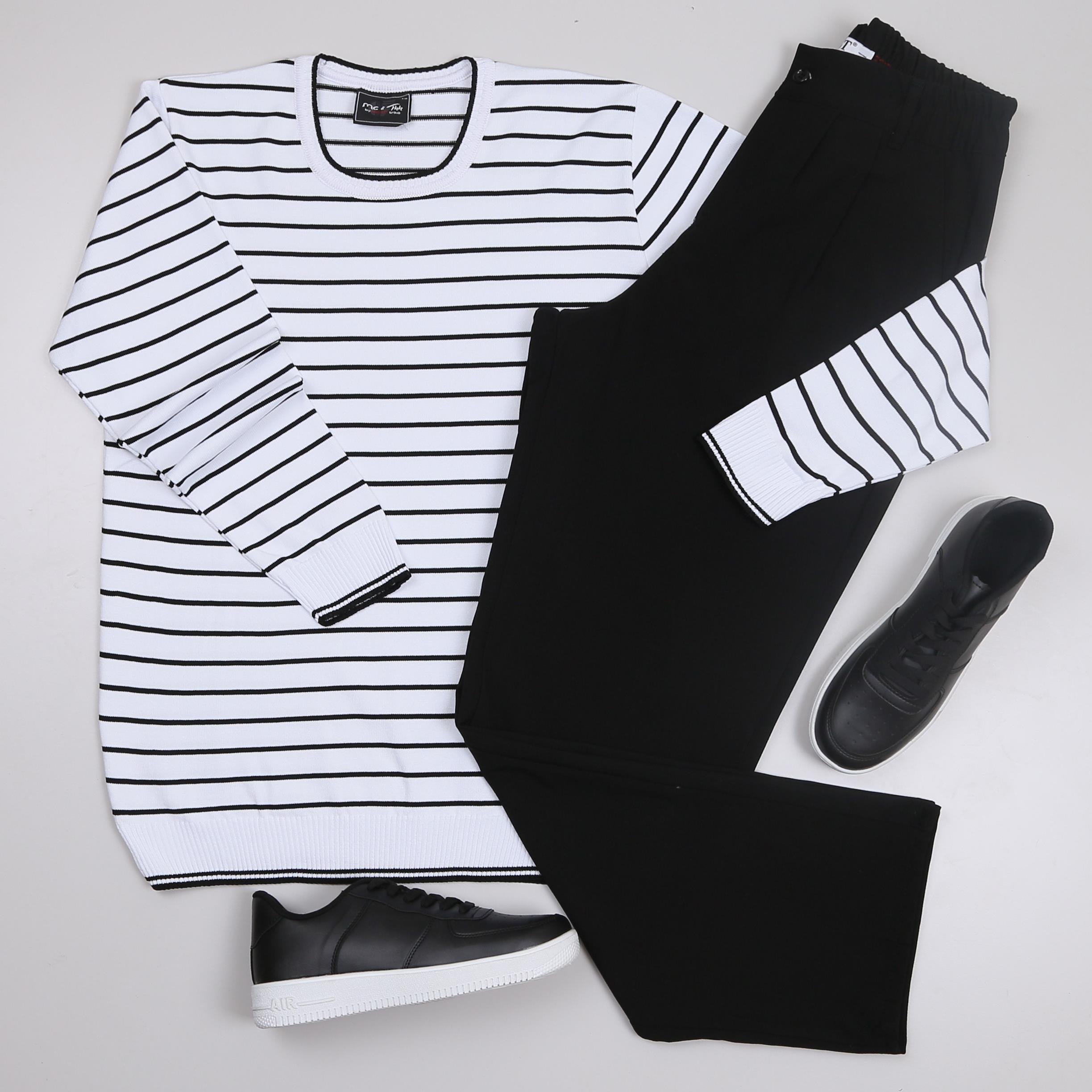 Beyaz Çizgili triko Baggy Siyah kumaş Pantolon