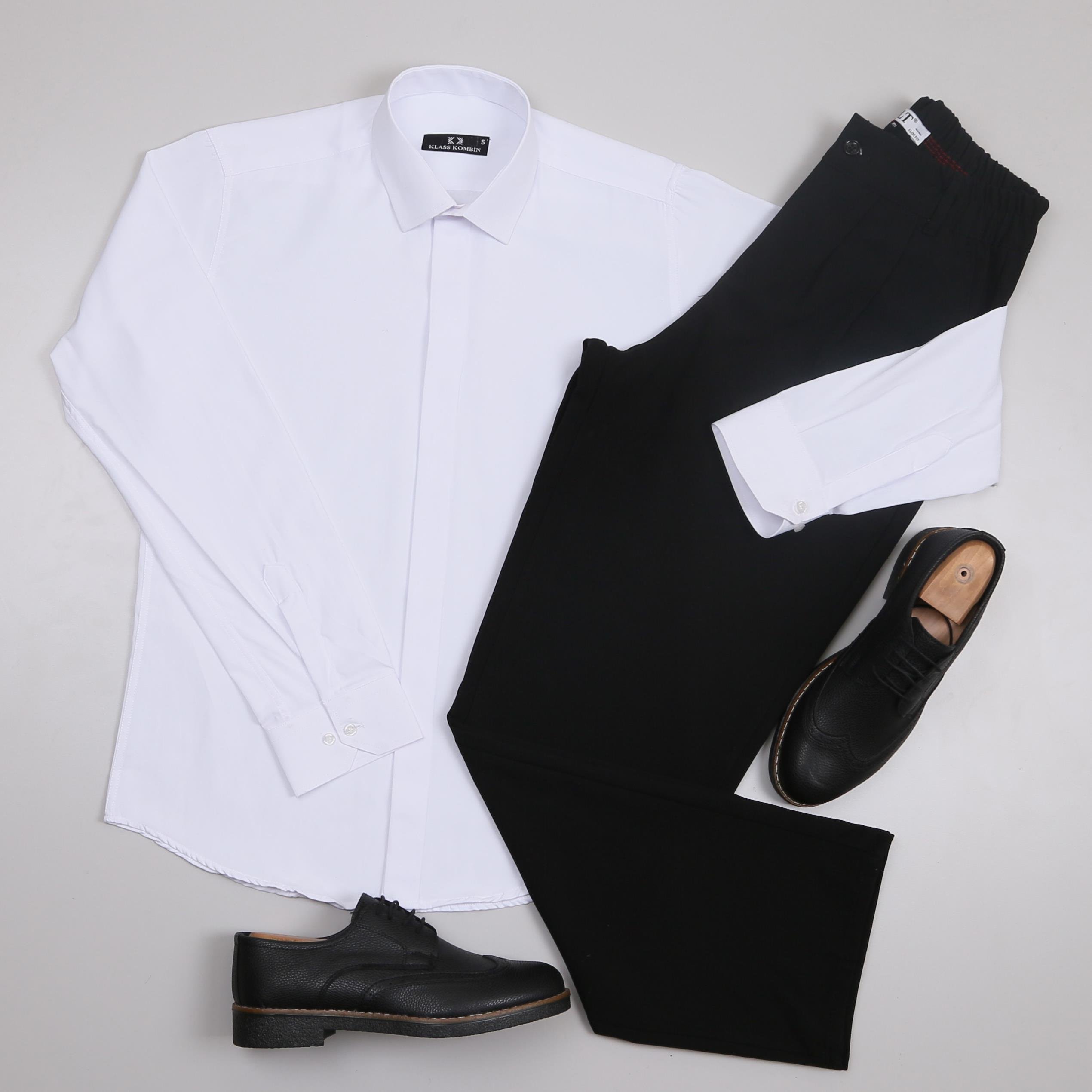 Beyaz Gömlek Baggy Siyah kumaş Pantolon
