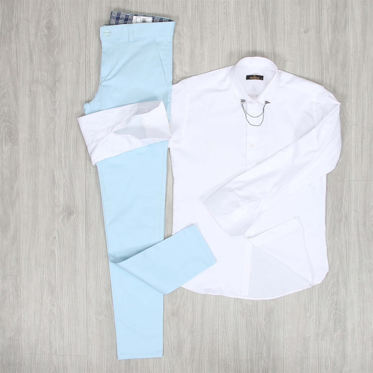 Beyaz Gömlek Buz Mavisi  Pantolon Kombini