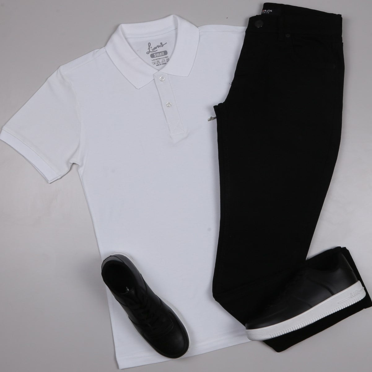 Beyaz Polo Yaka Tişört Siyah Kot  pantolon  ayakkabı Kombin