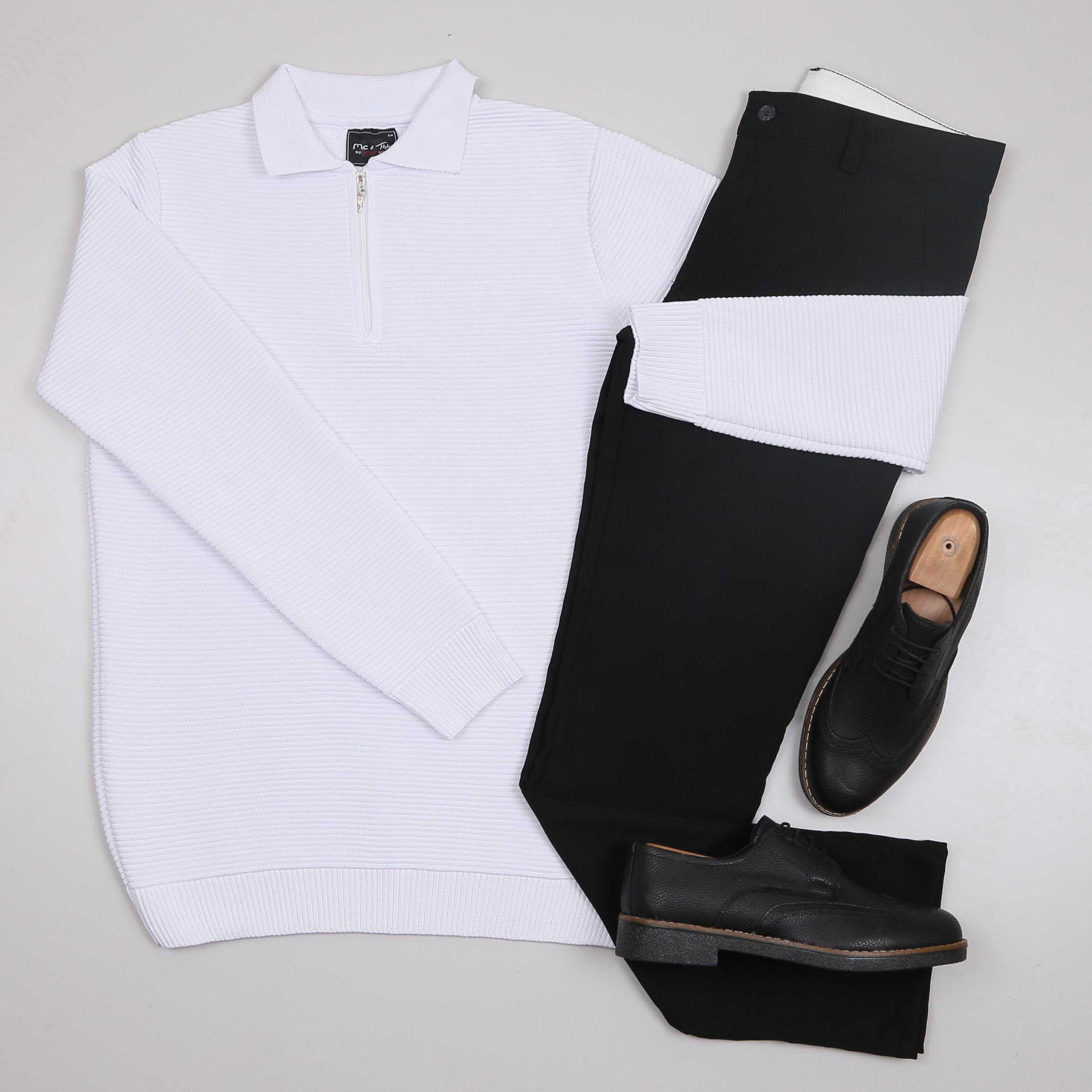 Beyaz triko Kazak Siyah kumaş Pantolon