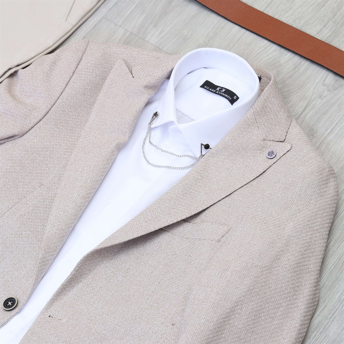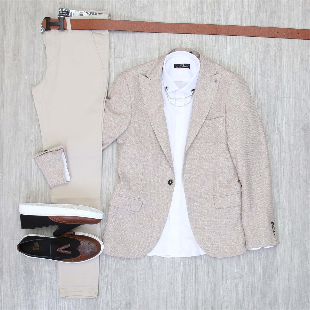 Bej Blazer Ceket A.Gri Pantolon Gömlek Ayakkabı Kombini