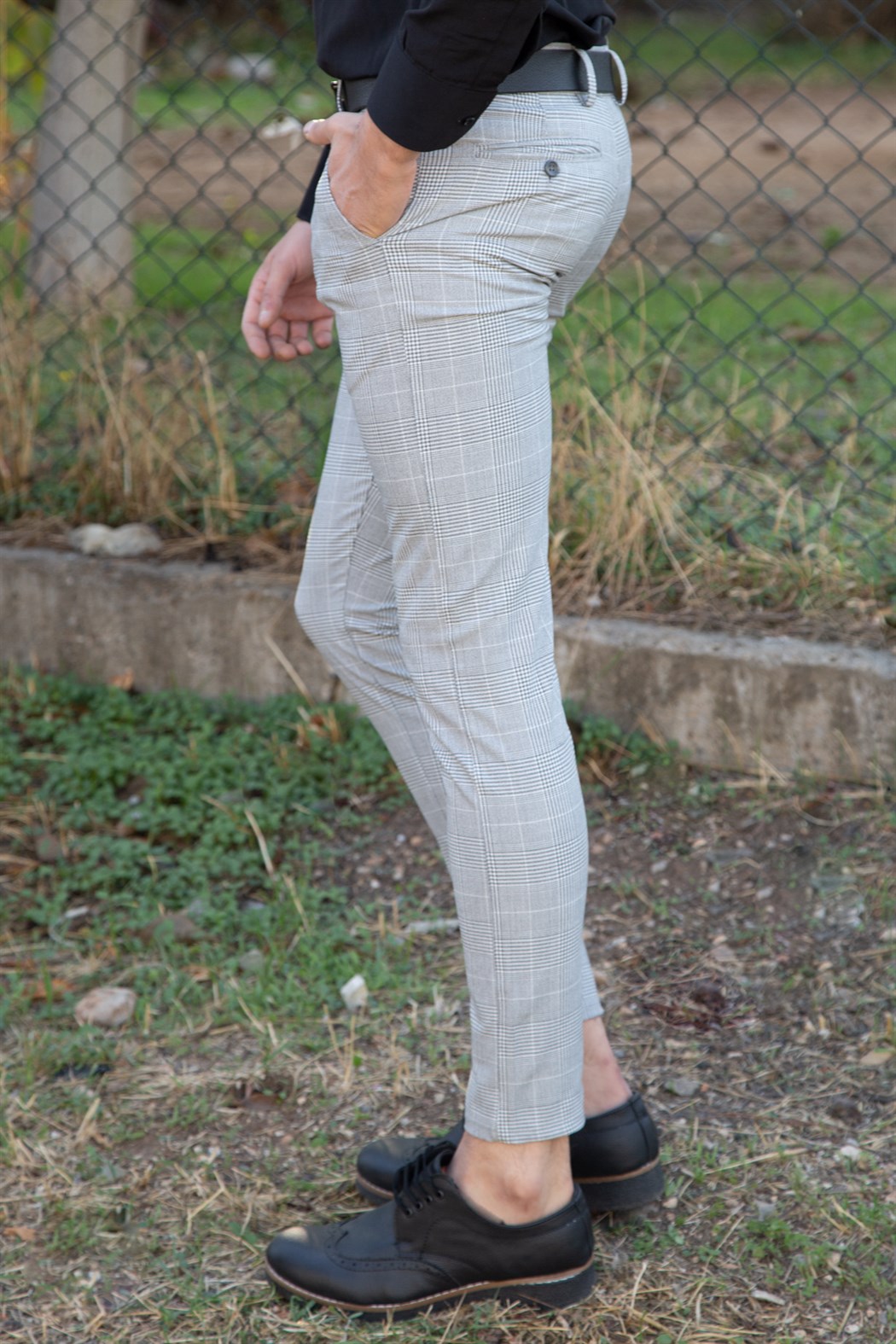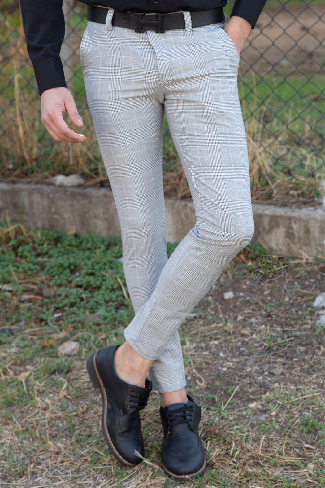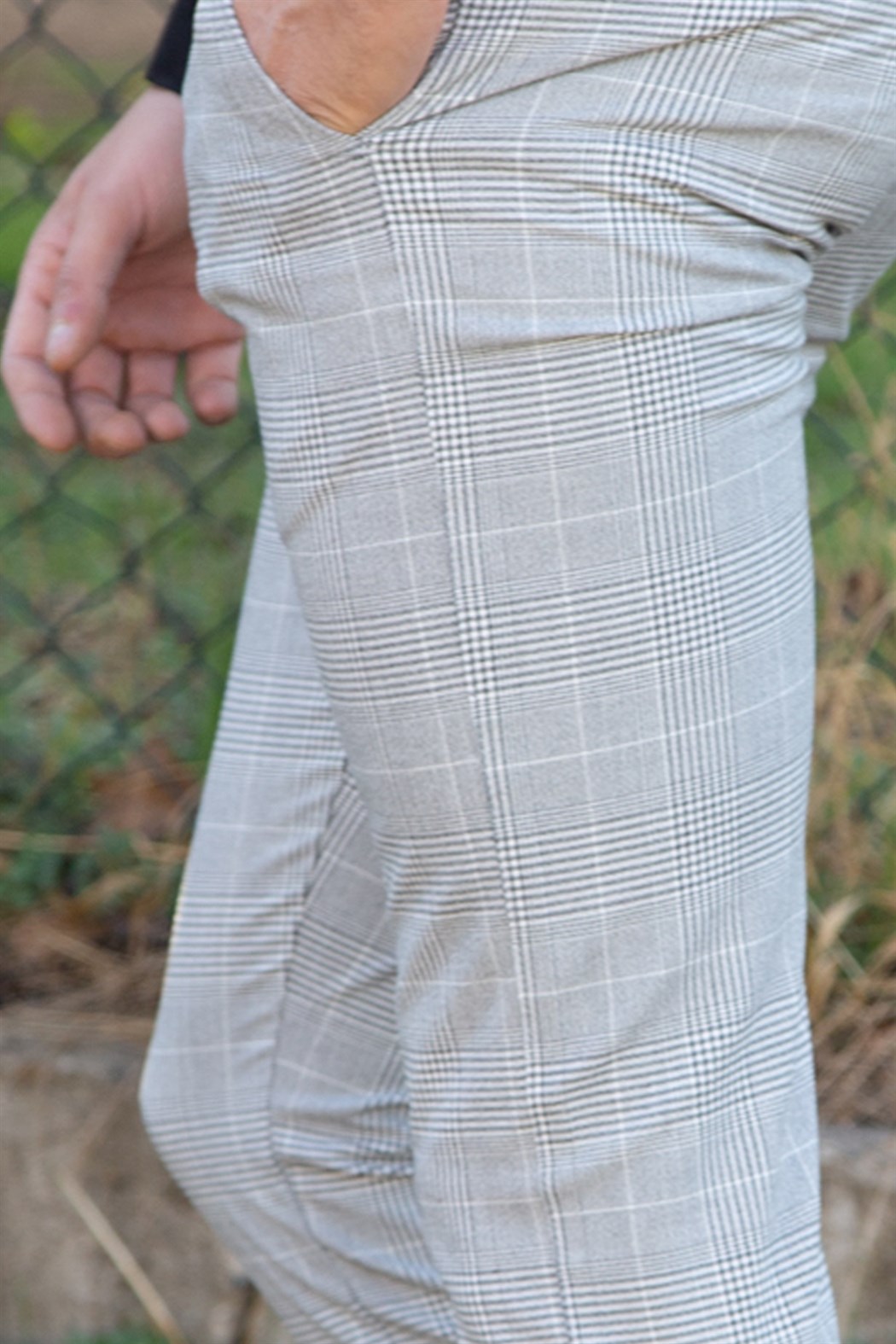 Сиви Бели Кариран Панталон от Ликра
