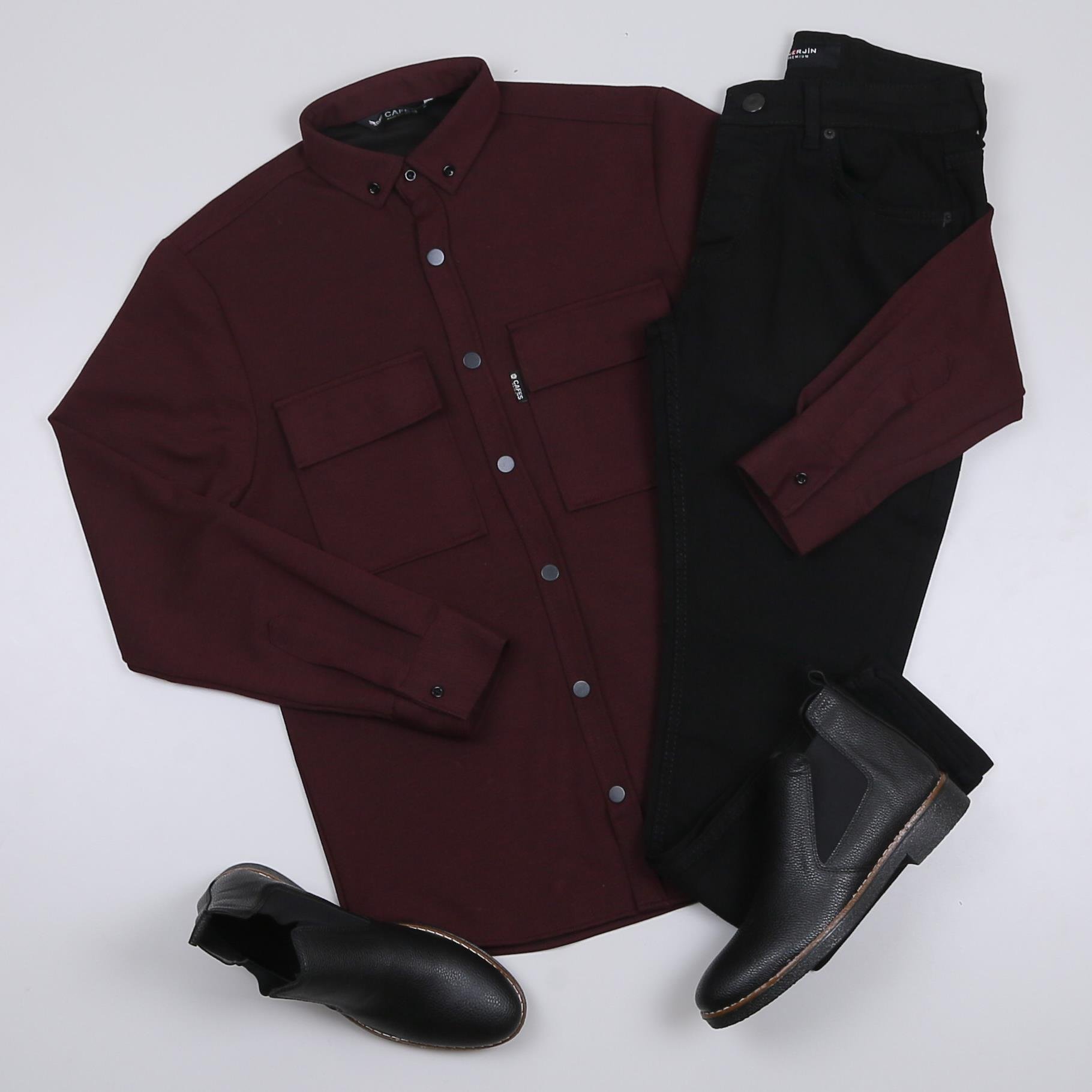 Bordo Cepli Gömlek Pantolon Bot Kombini