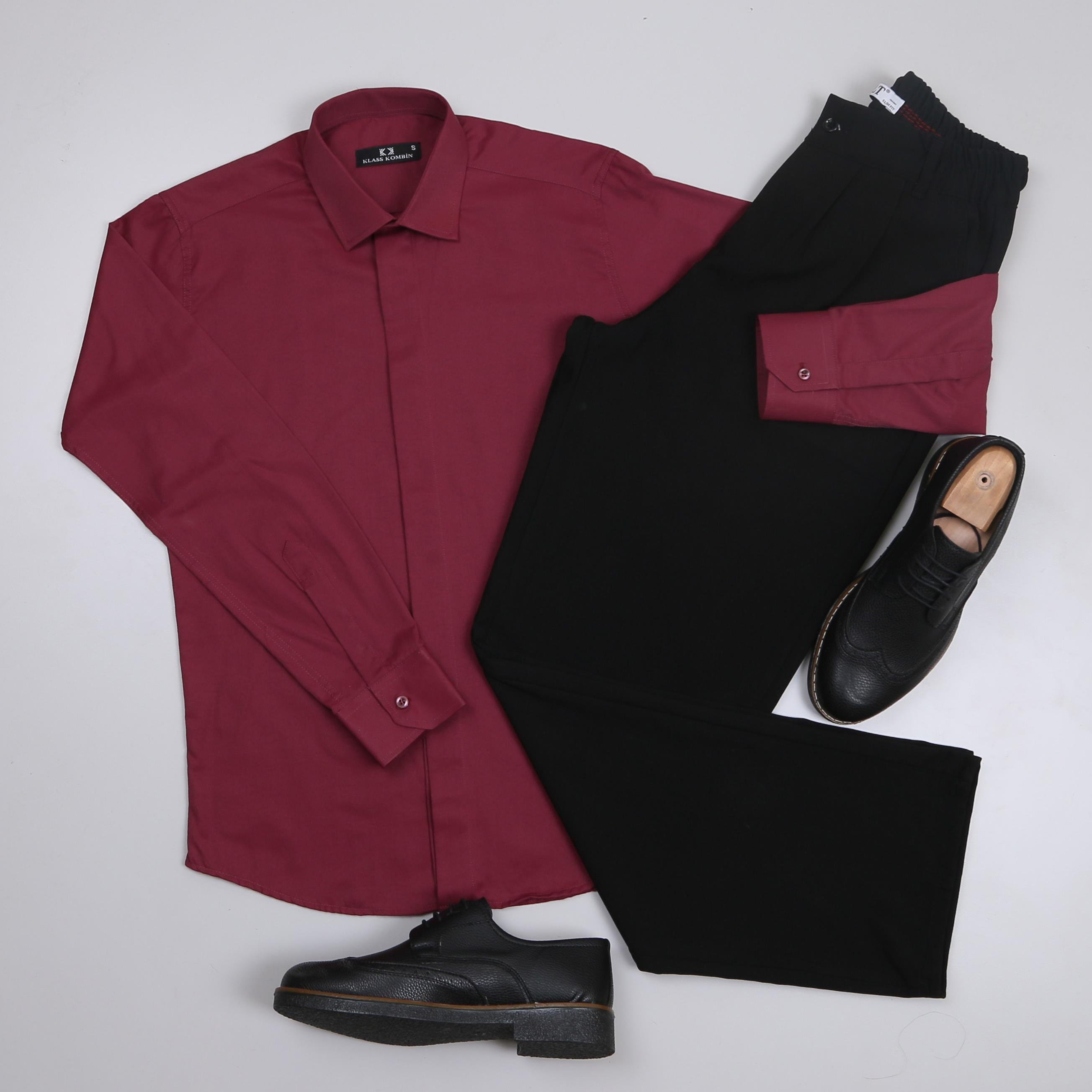 Bordo Gömlek Baggy Siyah kumaş Pantolon