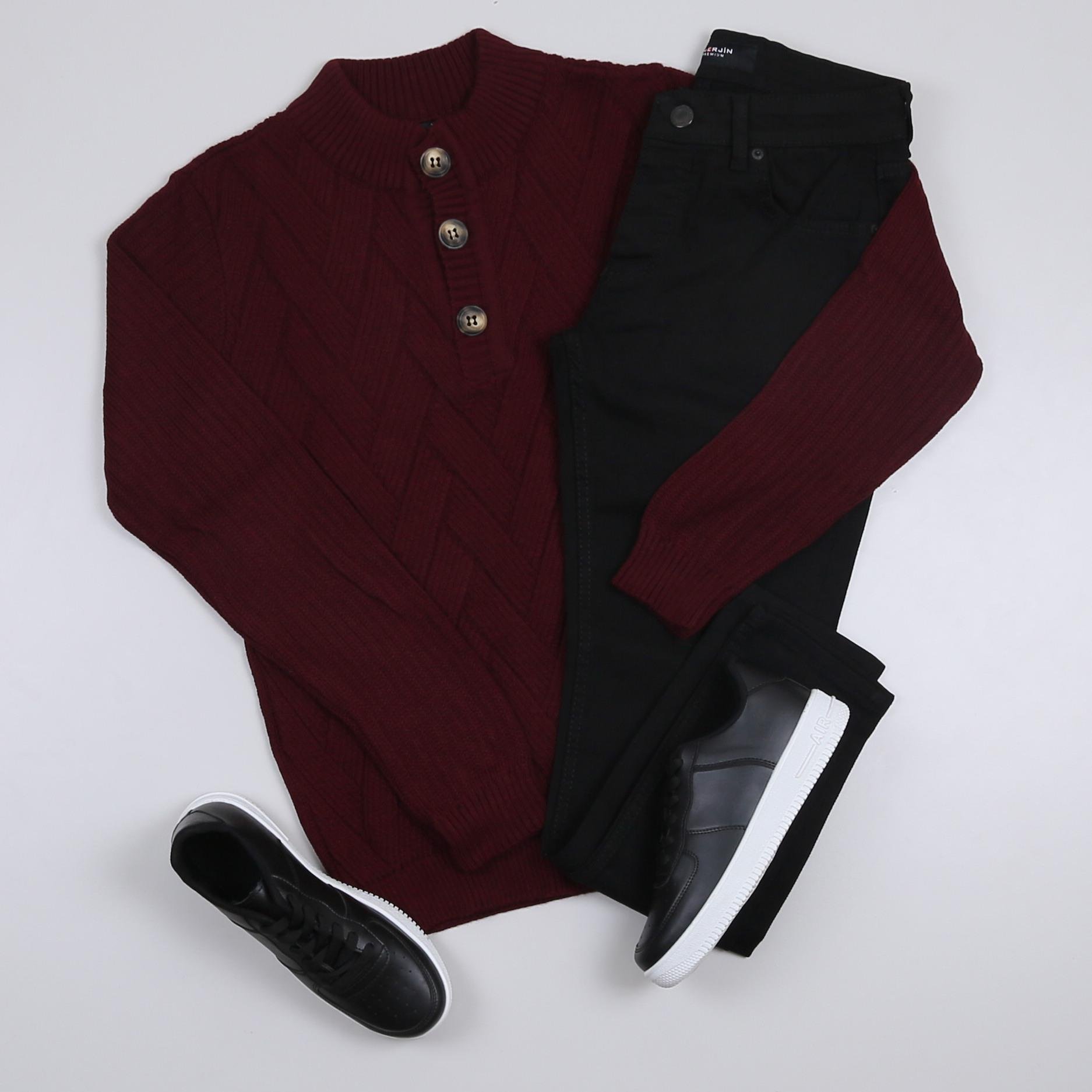 Bordo Triko Kazak Kot Pantolon Ayakkabı Kombini