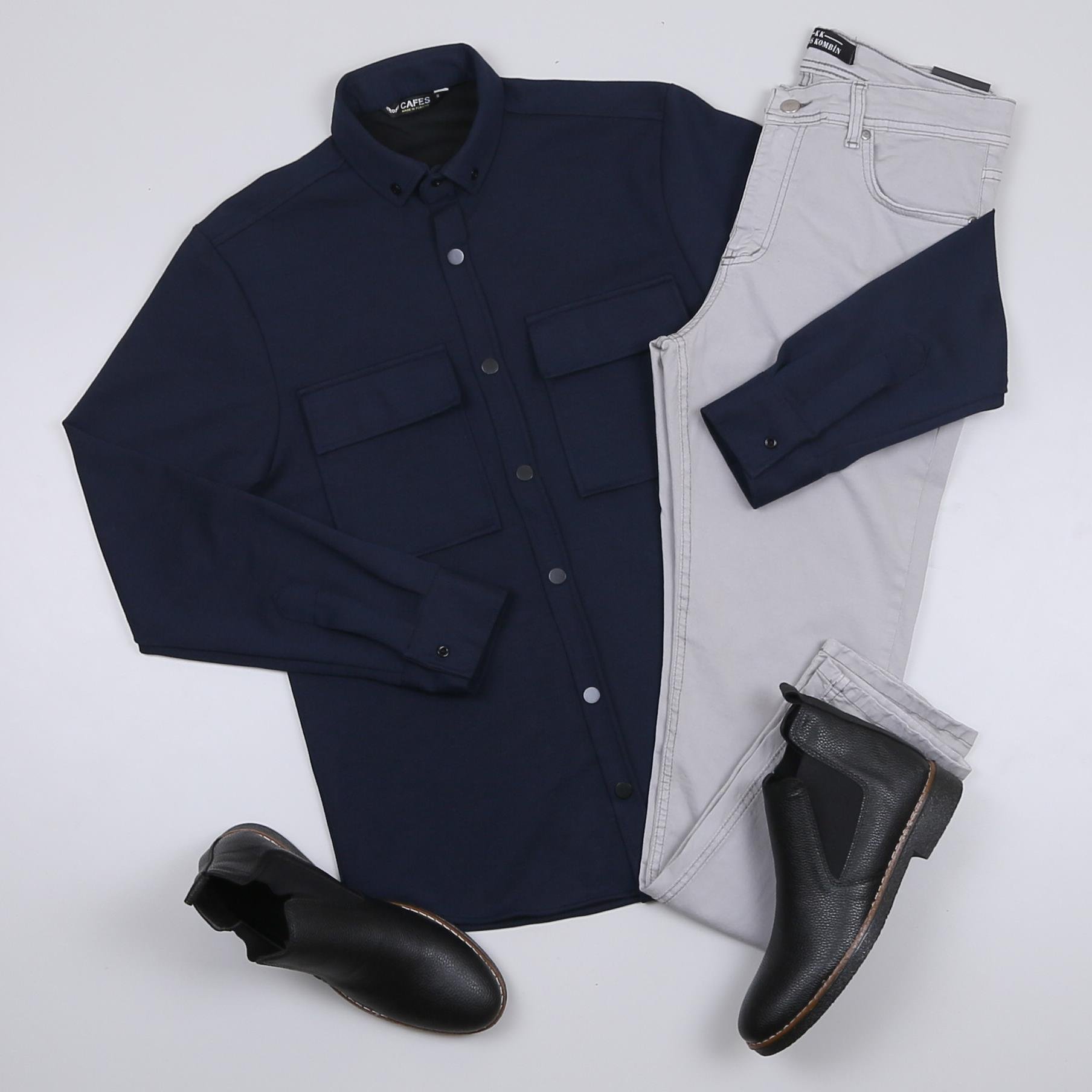 Cepli Lacivert Gömlek Pantolon Bot Kombini