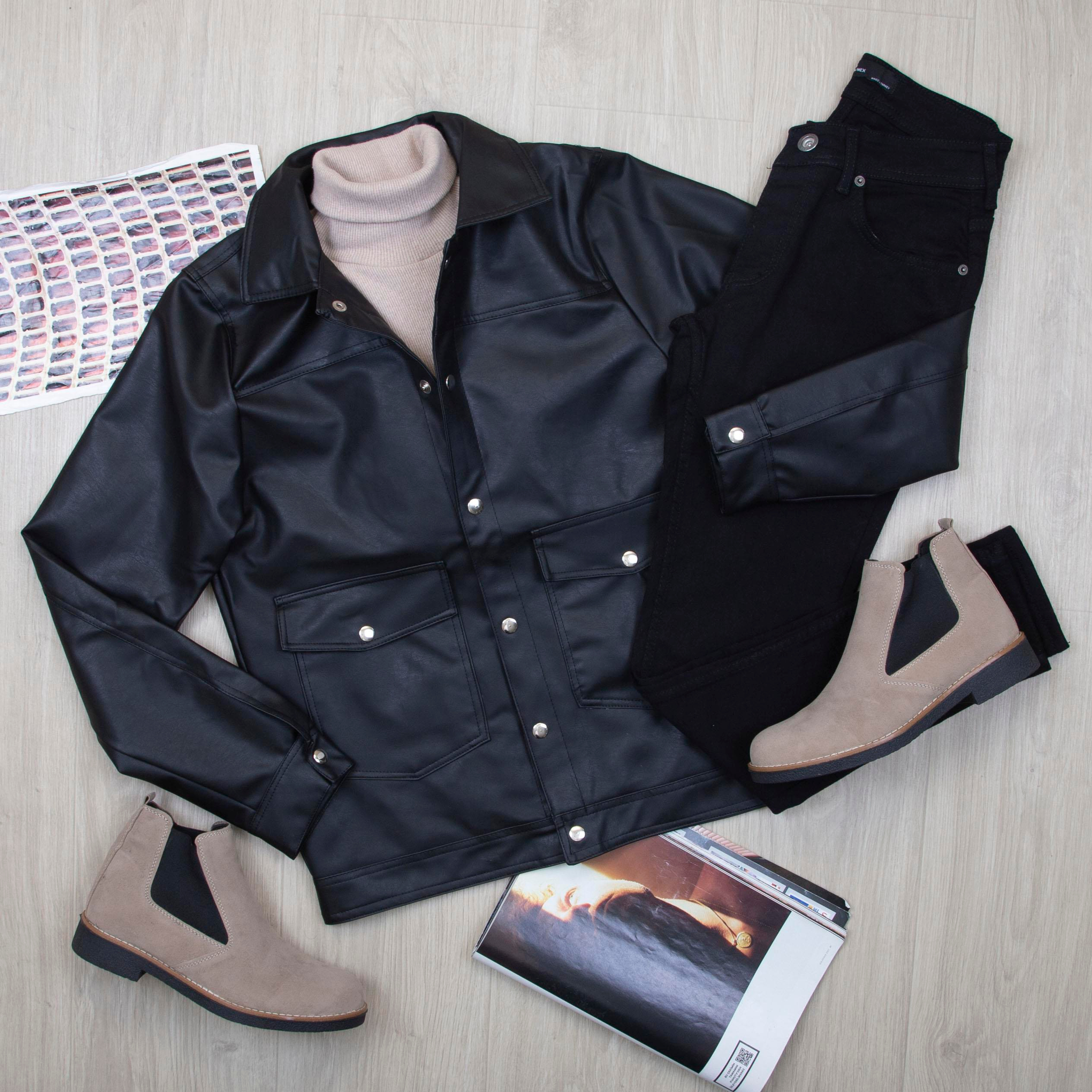 Deri Ceket Tişört Pantolon Ayakkabı Kombin