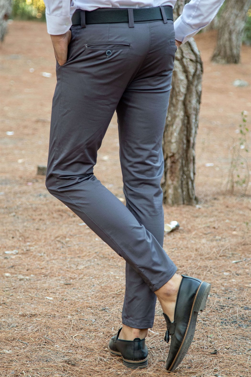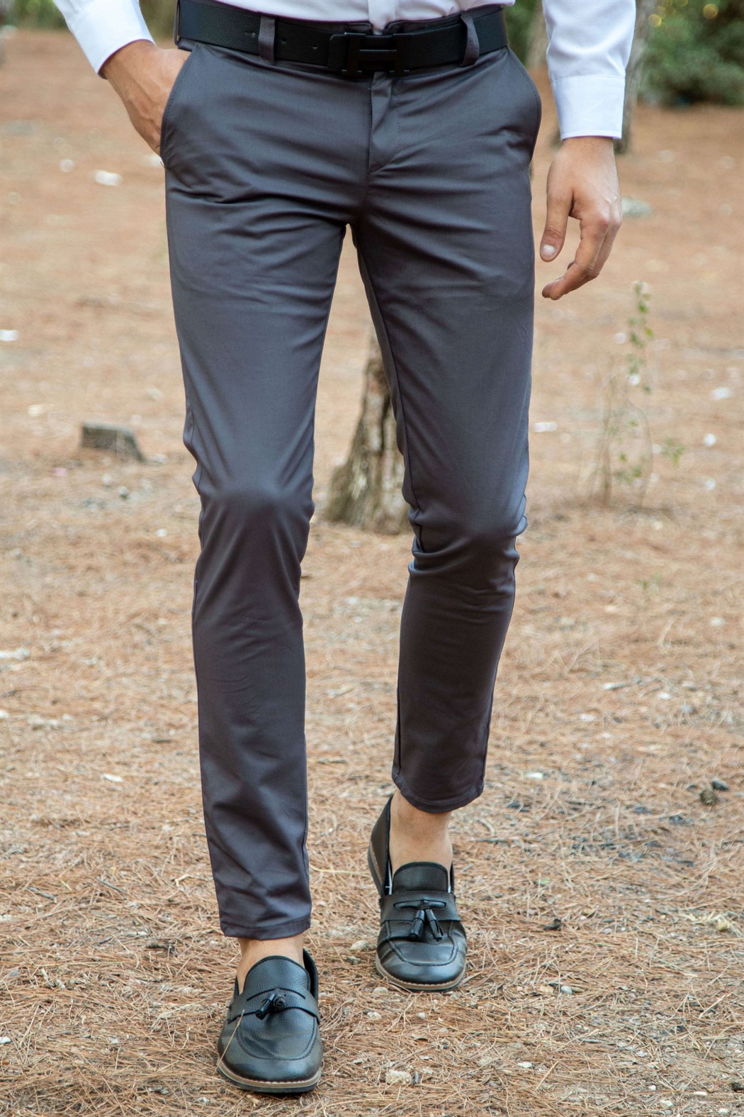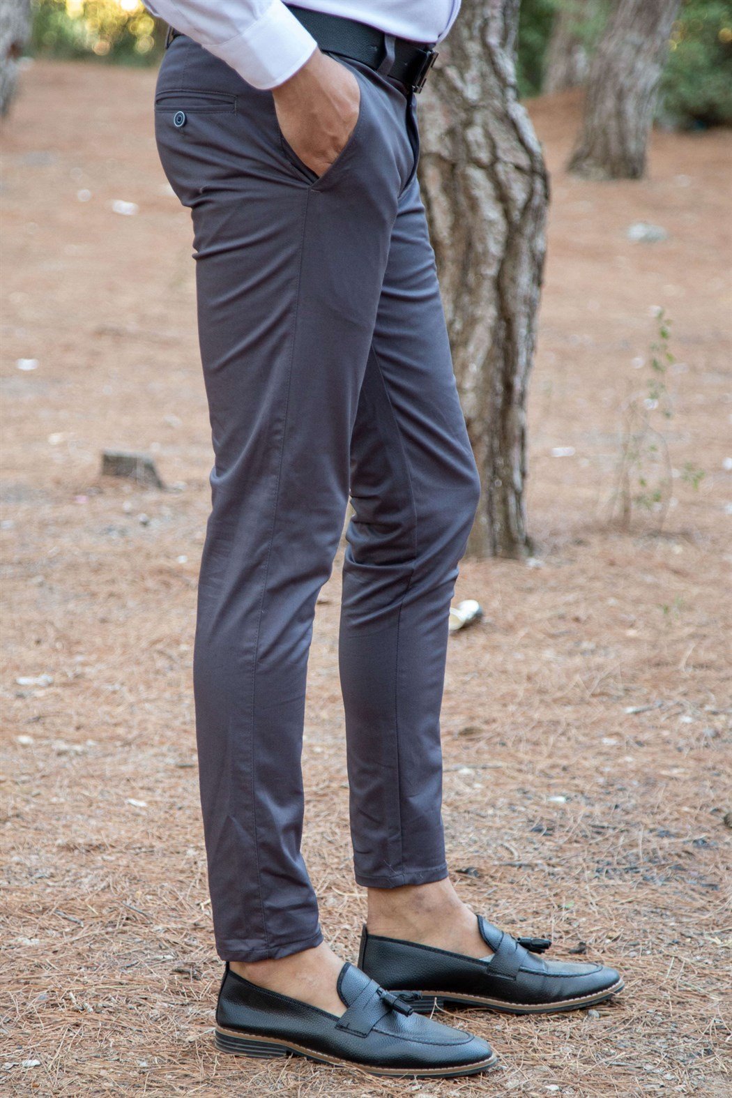 Likralı slim fit antrasit kumaş pantolon