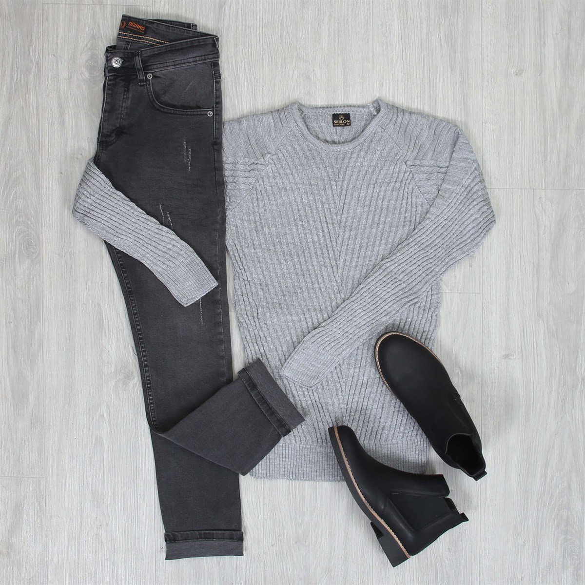 Füme Kot Pantolon Kazak Bot Kombini