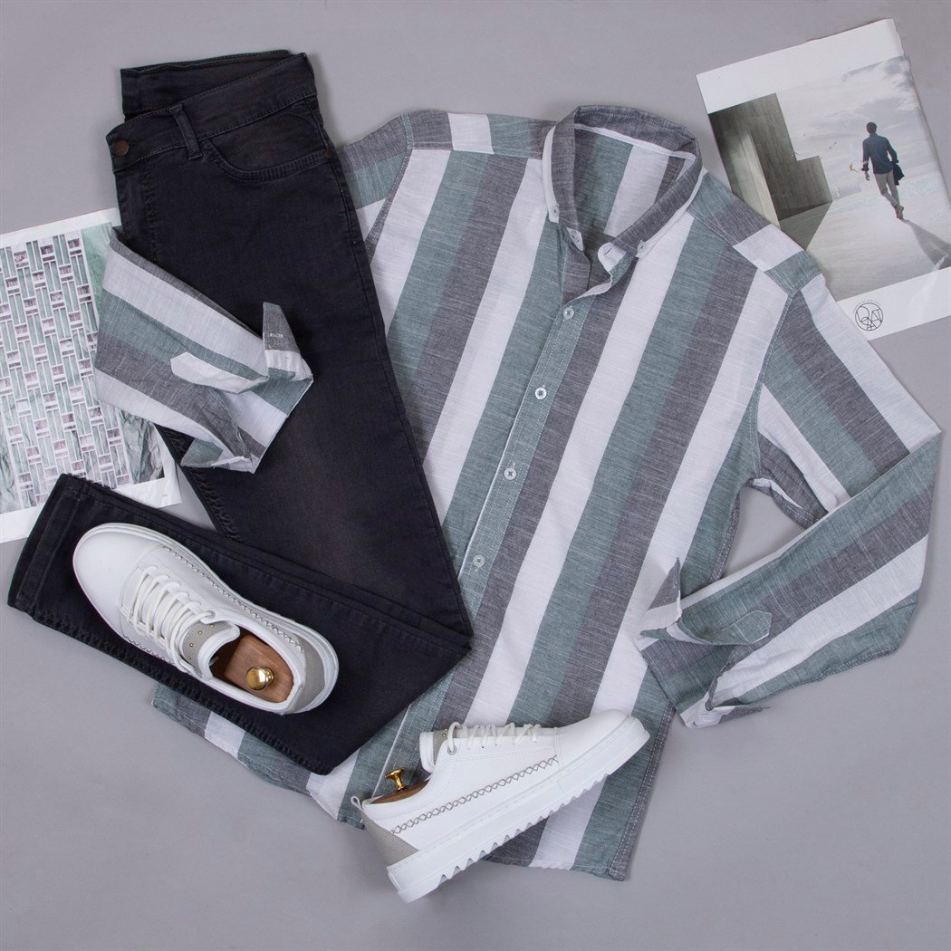Yeşil Gri Gömlek Pantolon Ayakkabı Kombin