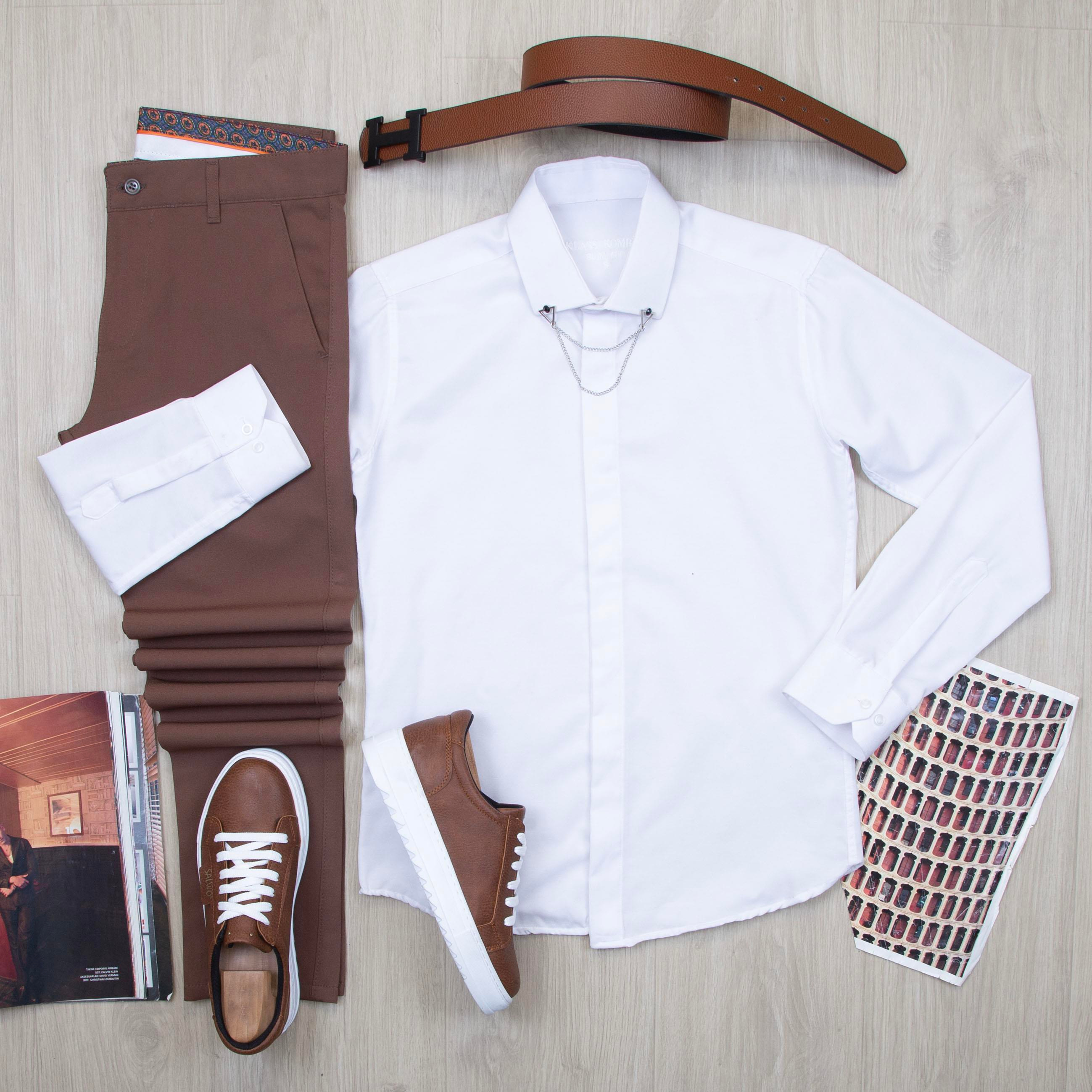 Beyaz Gömlek Kahve Pantolon Ayakkabı Kombin