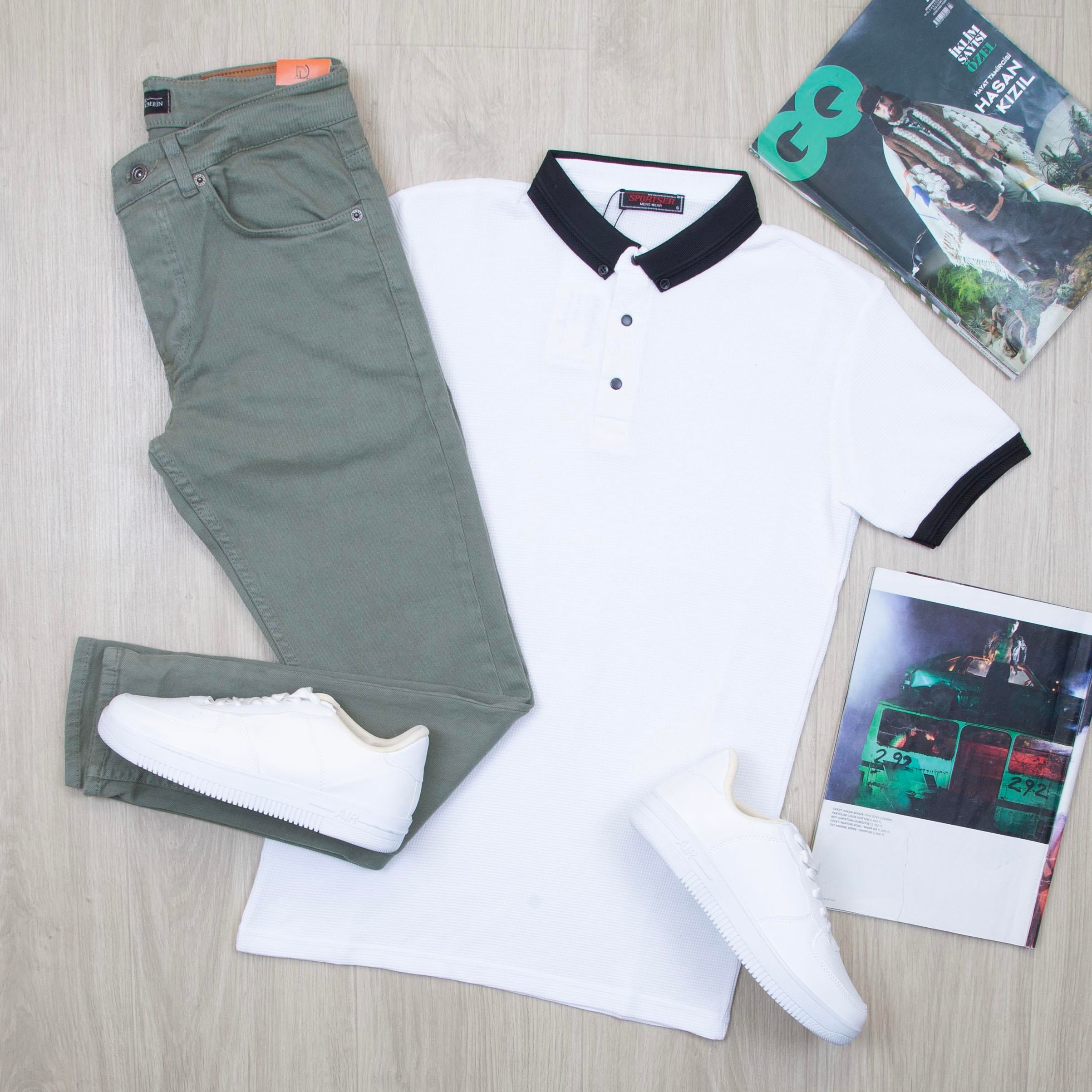 Beyaz Polo Yaka Tişört Pantolon Ayakkabı Kombin