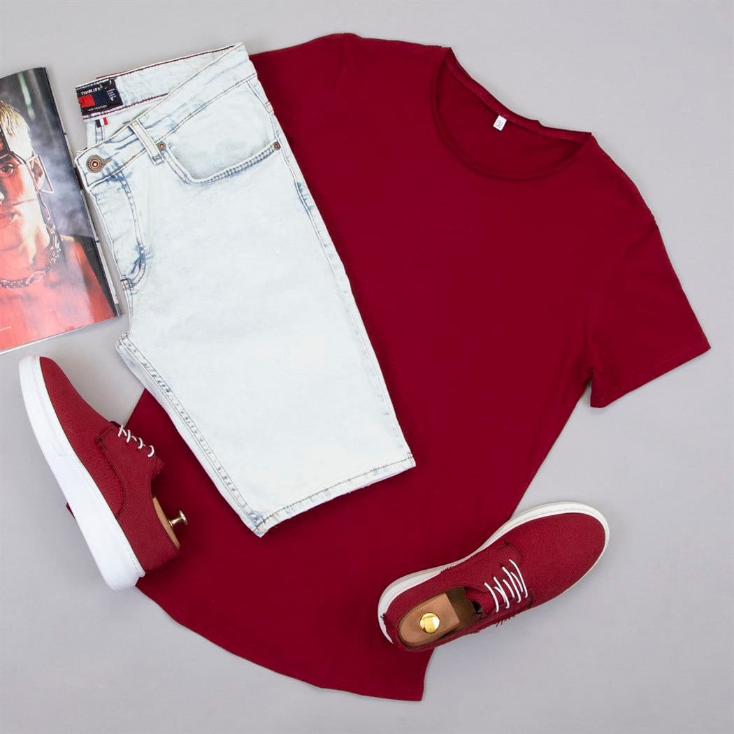 Buz Mavi Kot Şort Tişört Ayakkabı Kombin