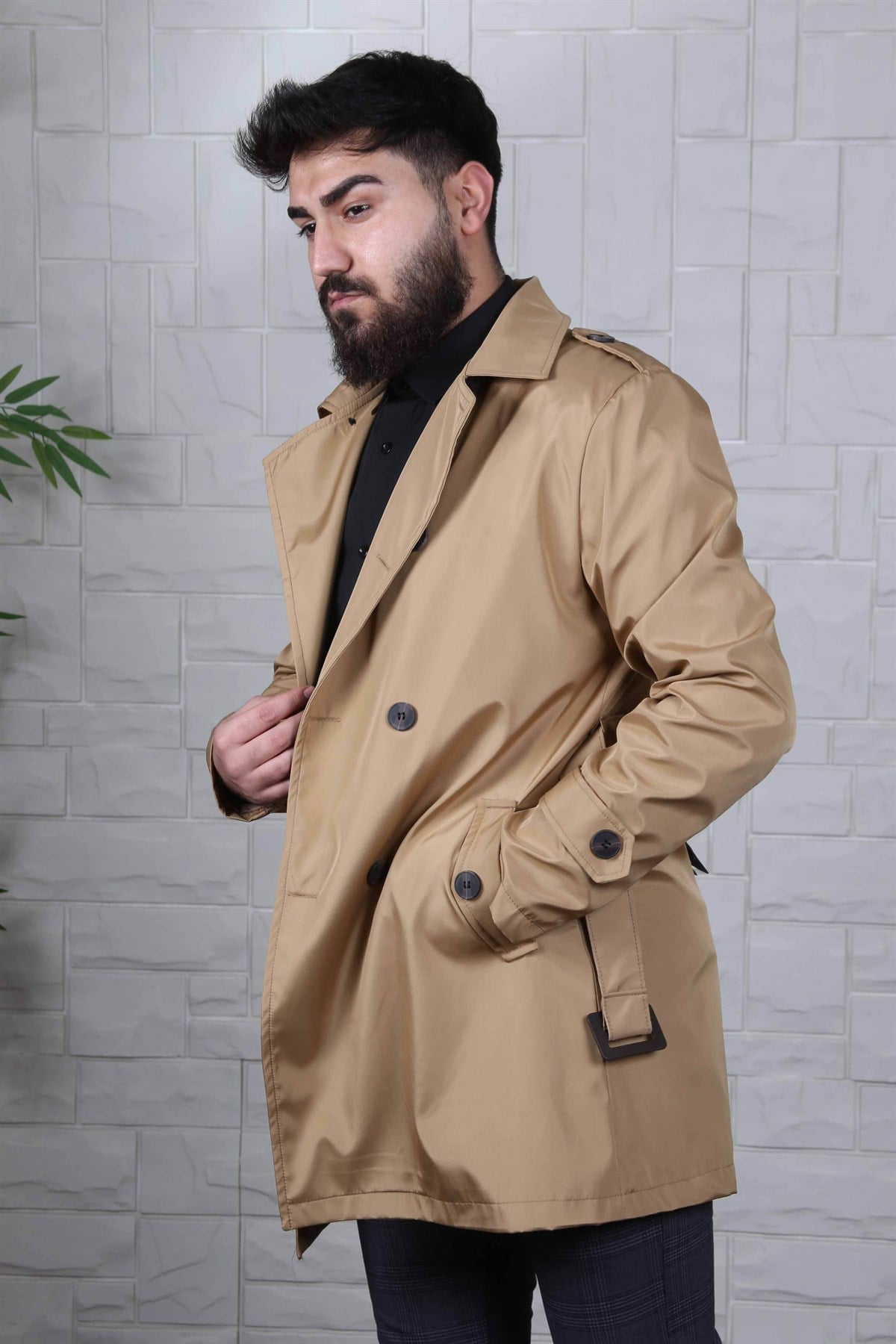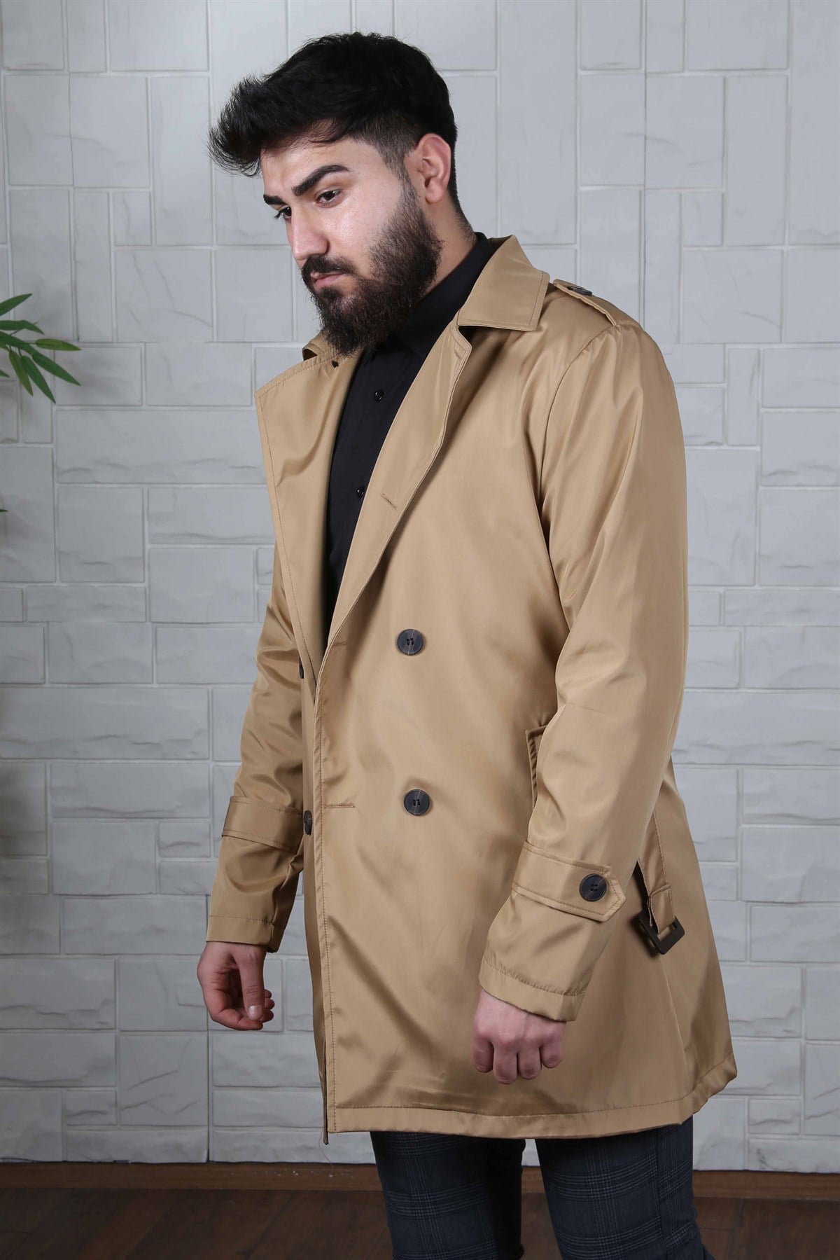 ERKEK SLİM FİT KRUVAZE YAKA TRENÇKOT BEJ BEJ
