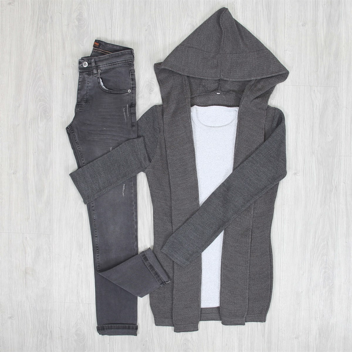 Füme Kot Gri Kazak Gri Hırka Kombini