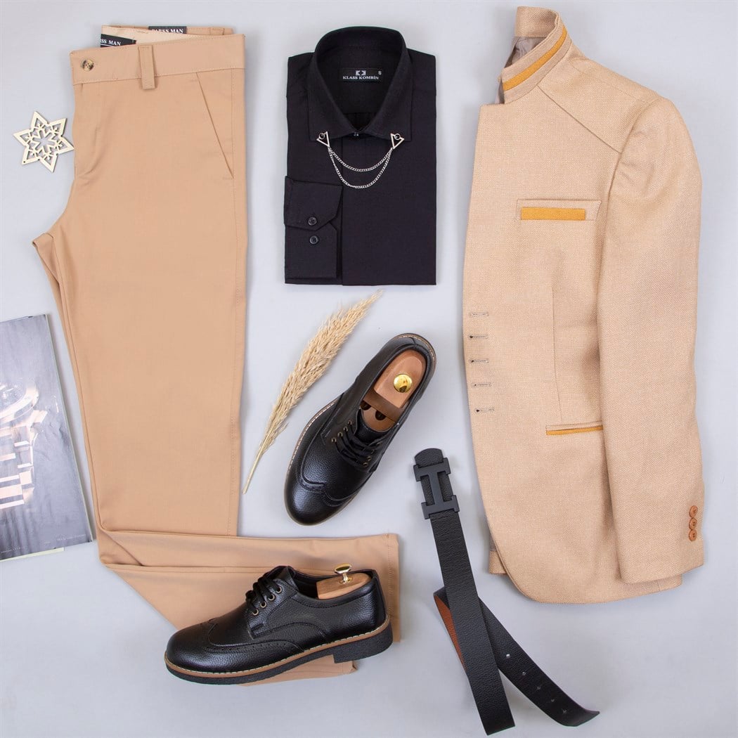 Hardal Dik Yaka Ceket Gömlek Pantolon Ayakkabı