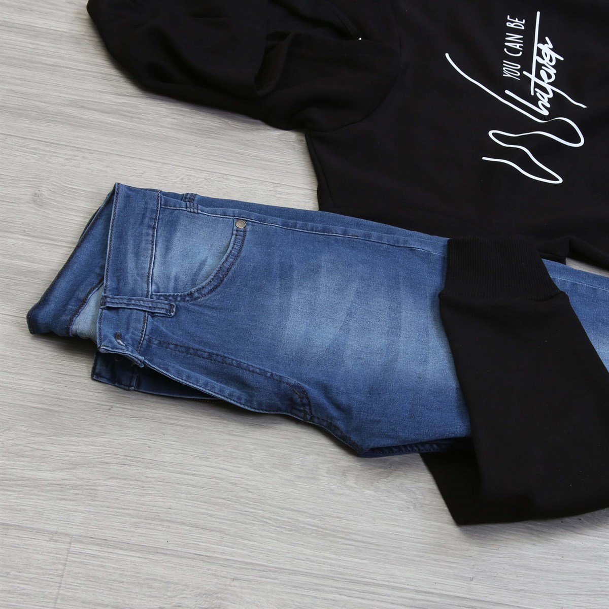 Mavi Kot Siyah Baskılı Sweat Kombin