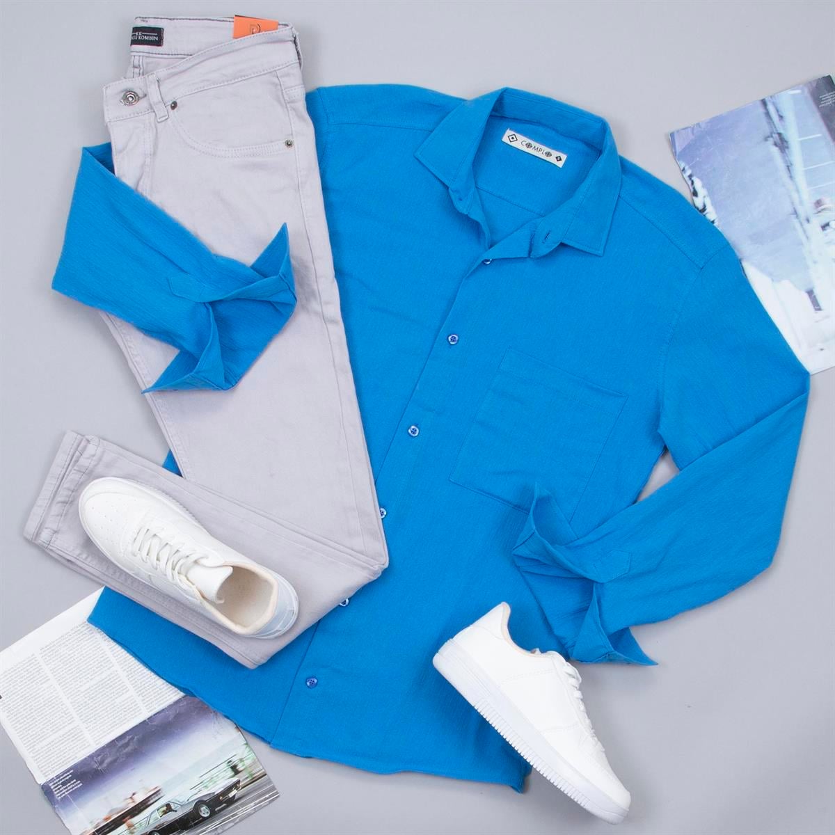 Mavi Spor Gömlek Pantolon Ayakkabı Kombin