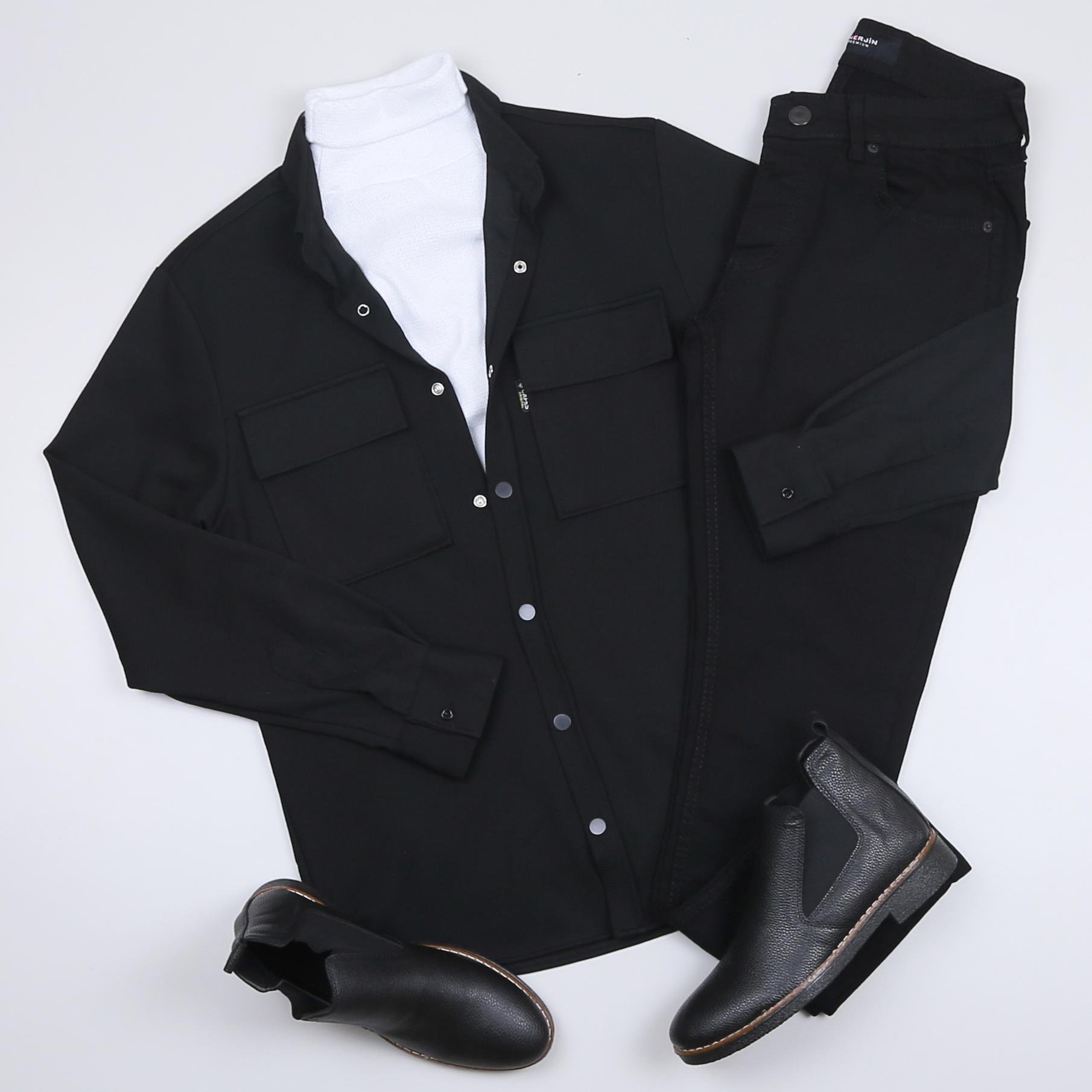 Siyah Kaşe Gömlek Boğazlı Body Pantolon Bot Kombin