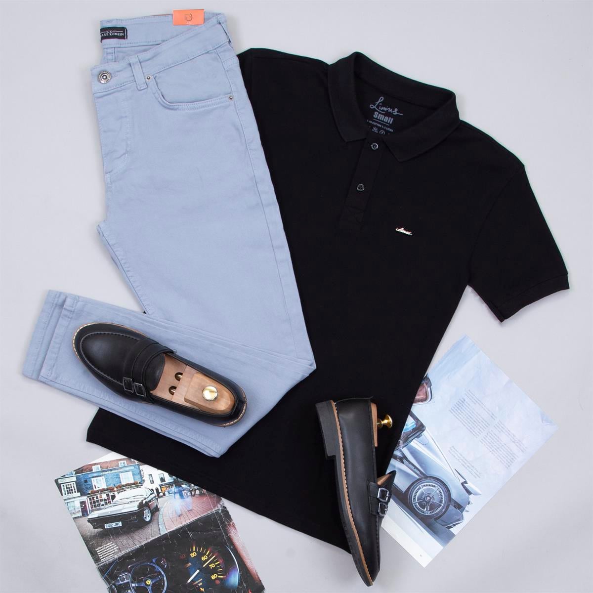 Siyah Polo Yaka Tişört Pantolon Ayakkabı Kombin