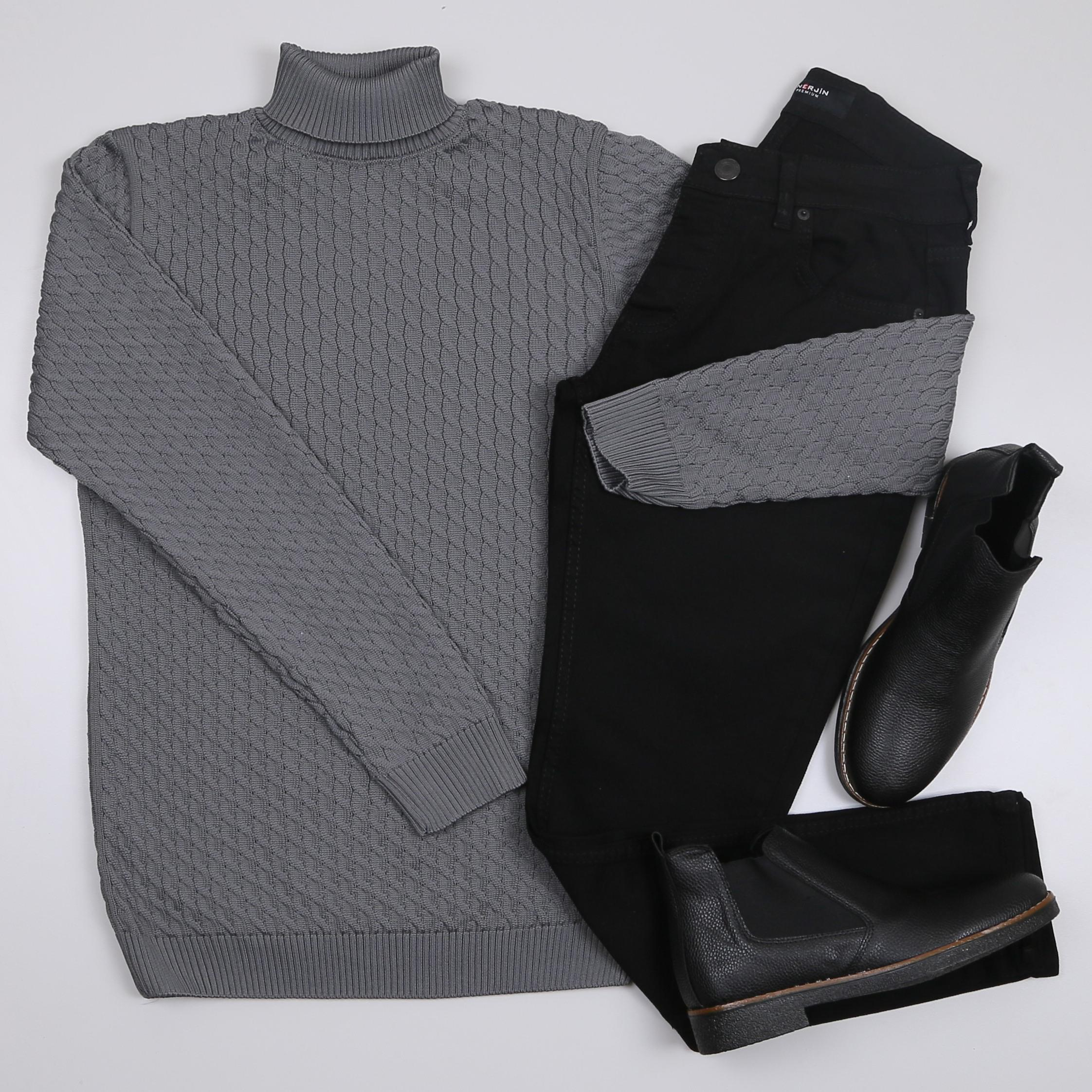 Füme Boğazlı triko Siyah kot Pantolon