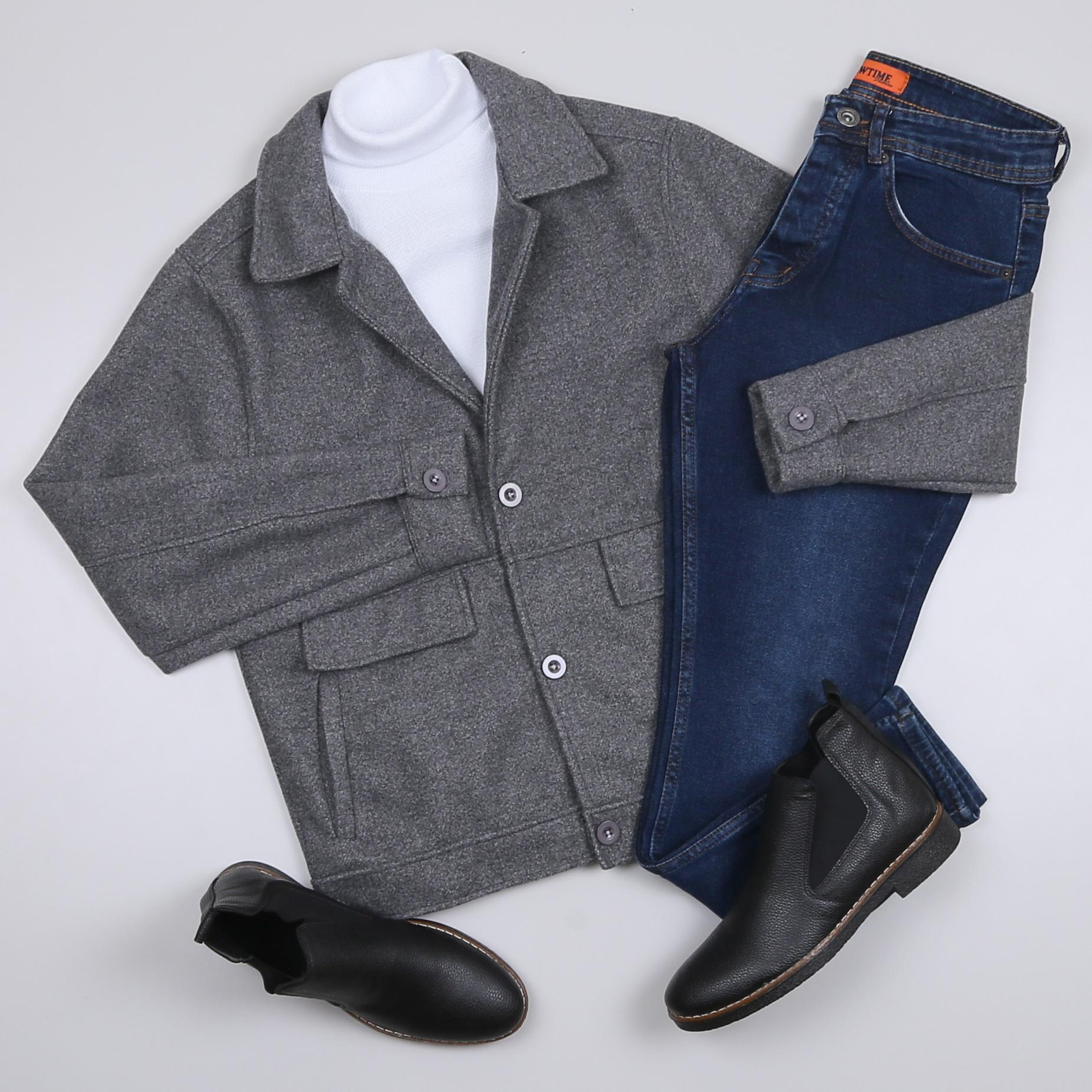 Füme Kaşe Ceket Boğazlı Body Kot Pantolon Bot Kombini