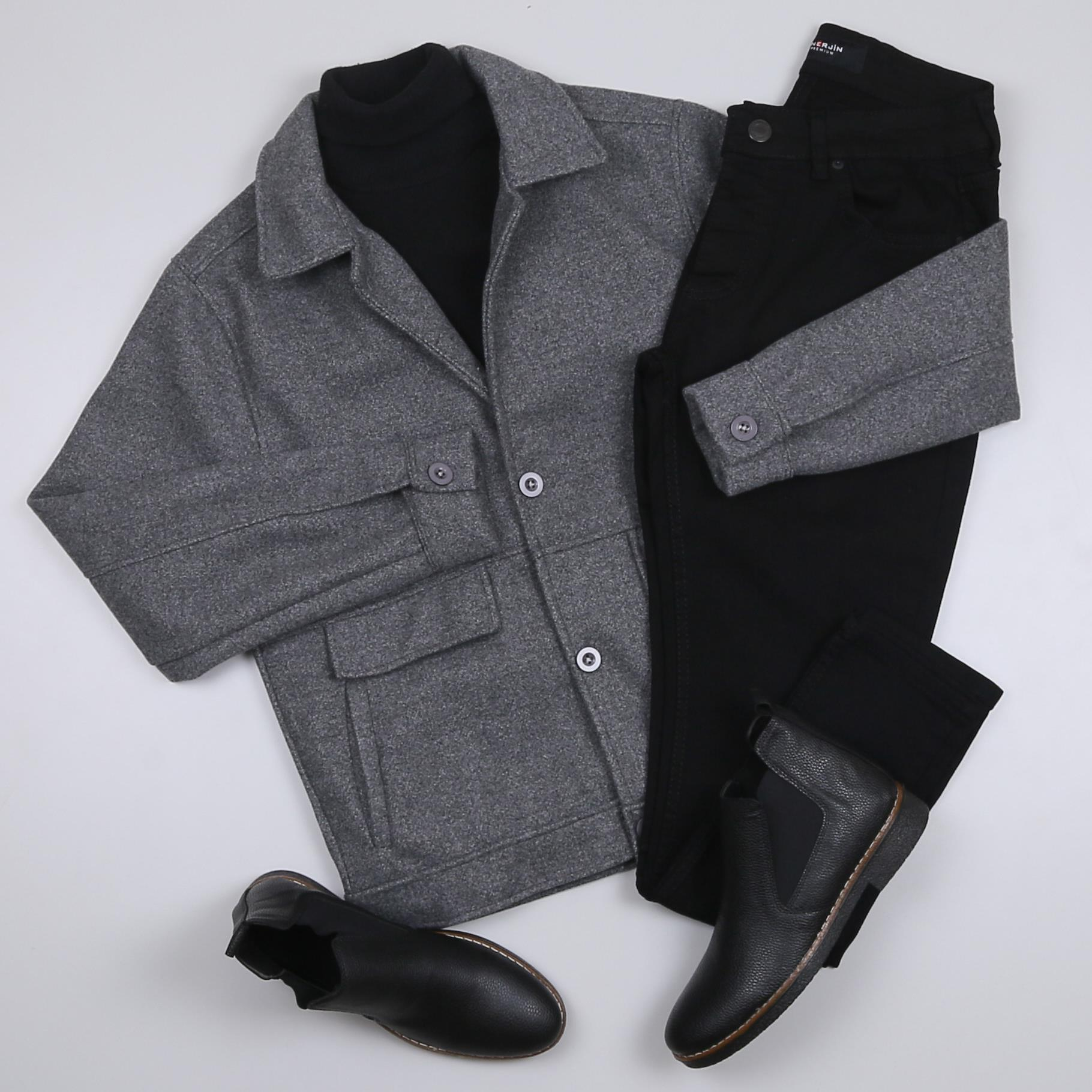Füme Kaşe Ceket Boğazlı Body Kot Pantolon Bot Kombini