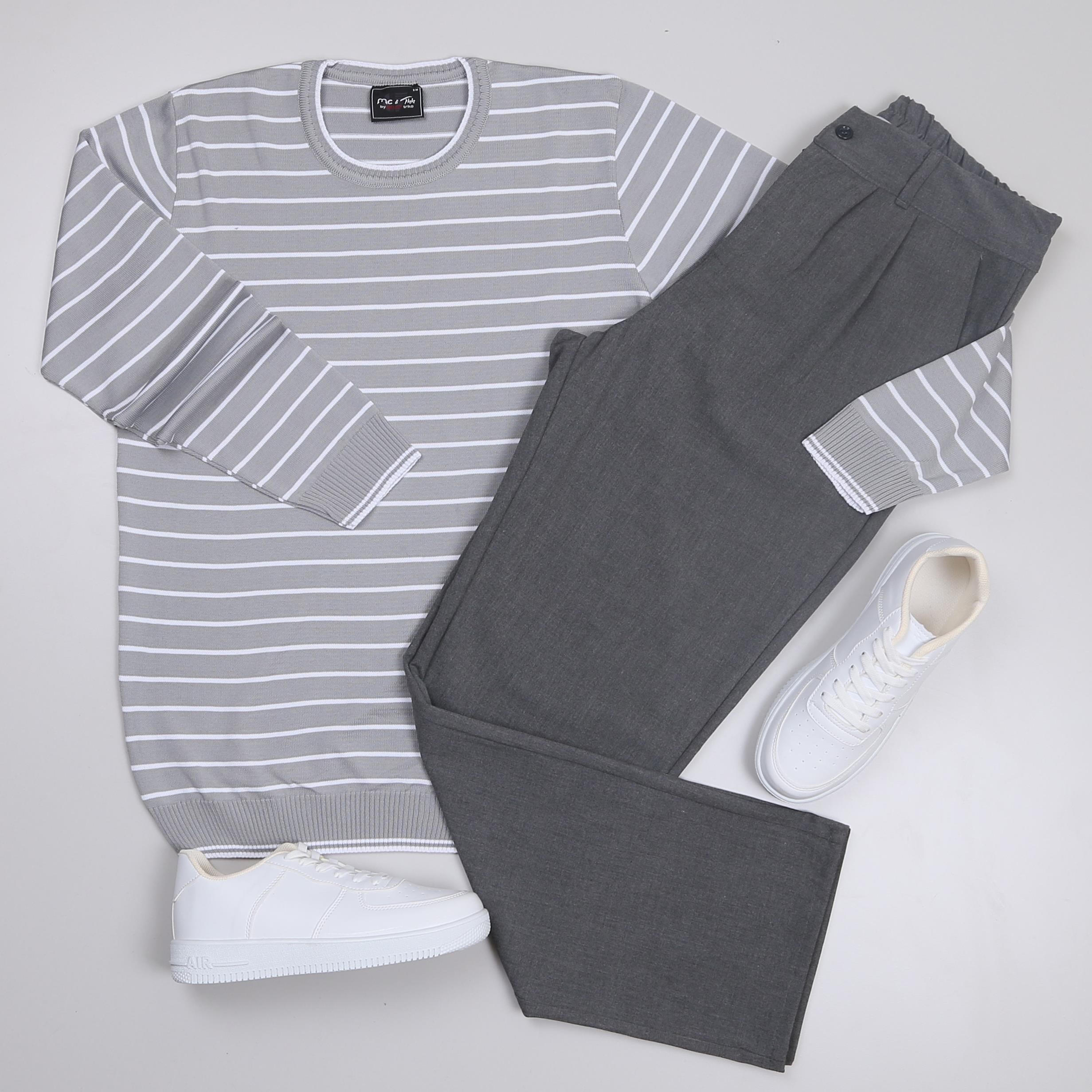 Gri Çizgili triko Baggy Füme kumaş Pantolon