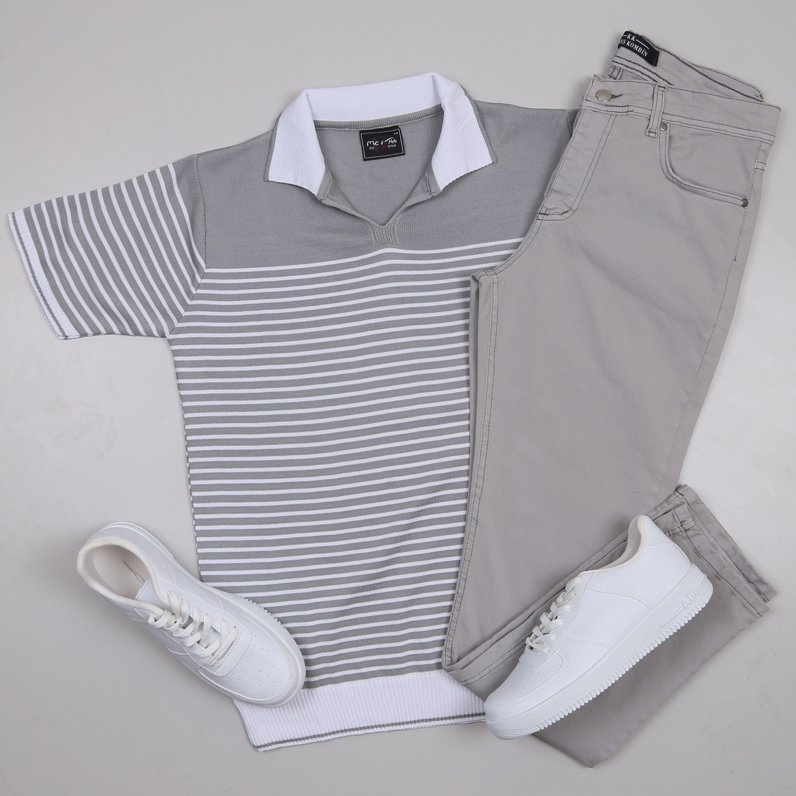 Gri Triko Polo Yaka Tişört Gri Pantolon Ayakkabı Kombin