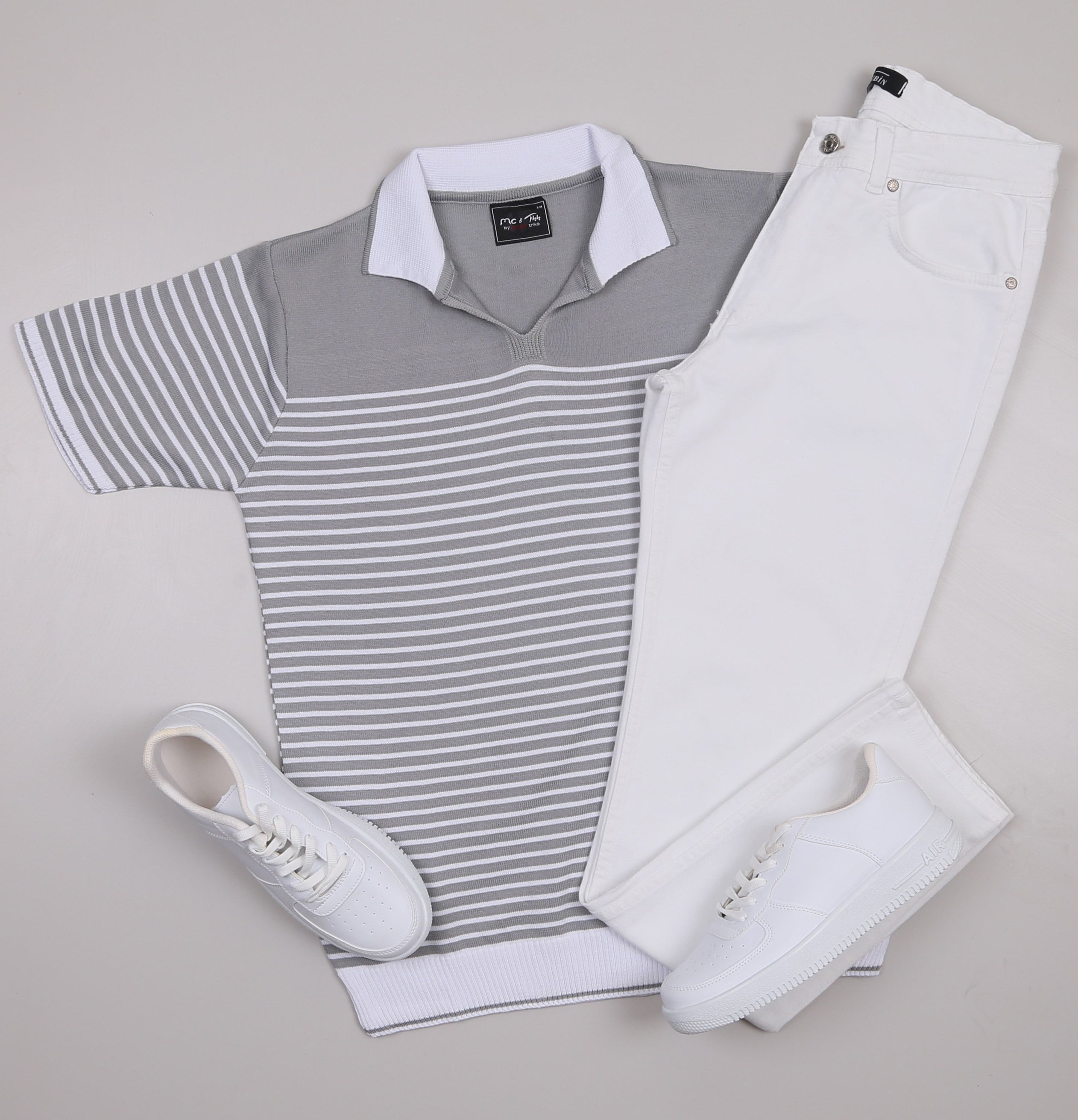 Gri Triko Polo Yaka Tişört Pantolon Ayakkabı Kombin