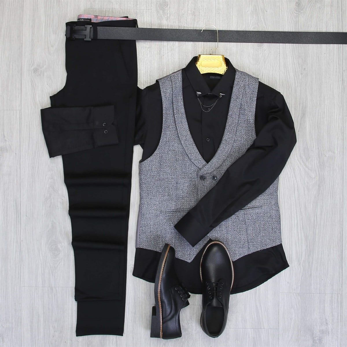 Gri Yelek Pantolon Gömlek Ayakkabı Kombini