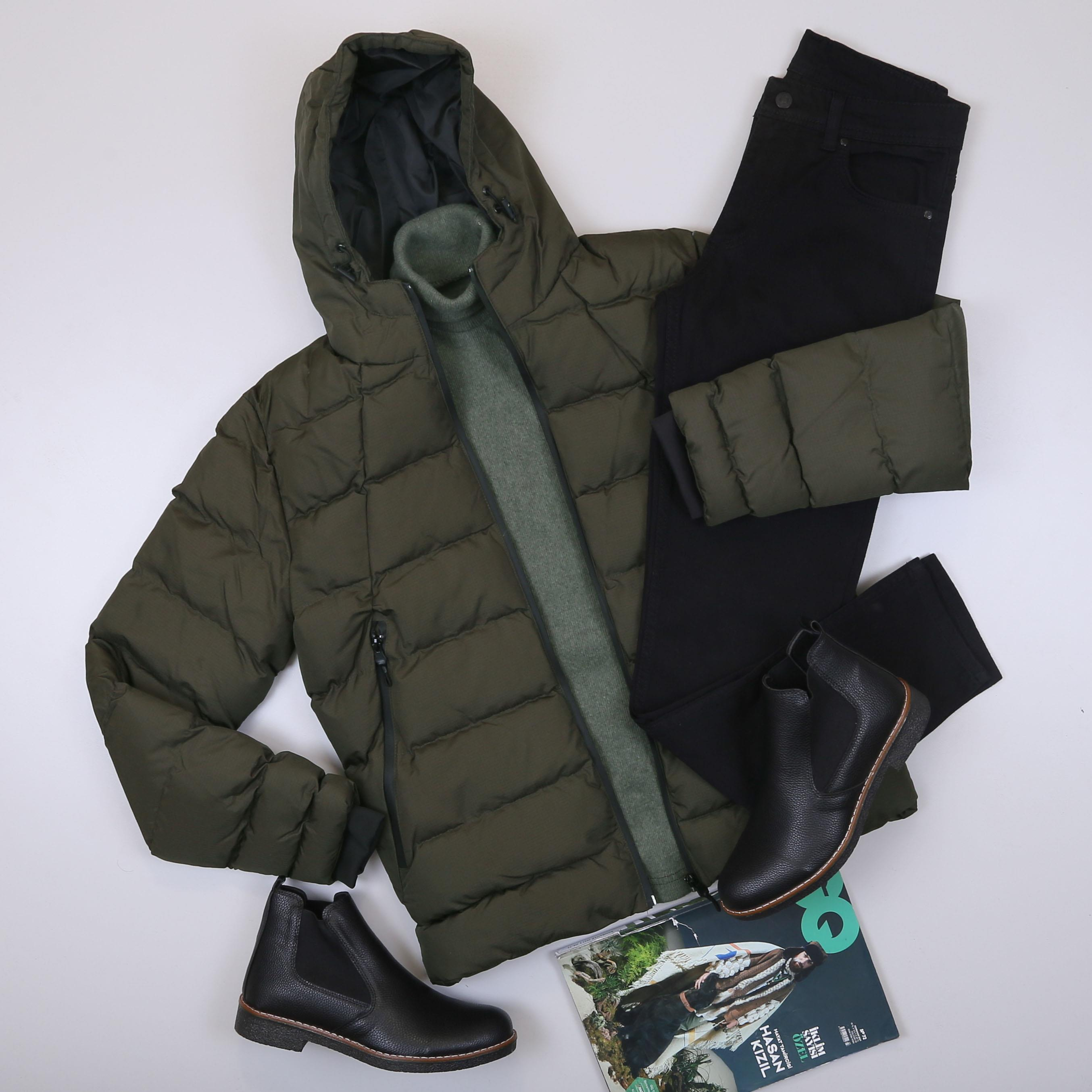 Haki Şişme Mont Boğazlı Body Pantolon Bot Kombin