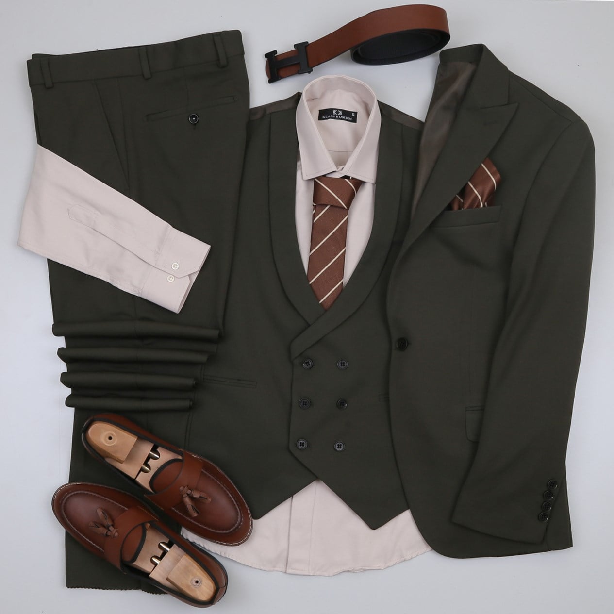 Haki Takım Elbise Kombini