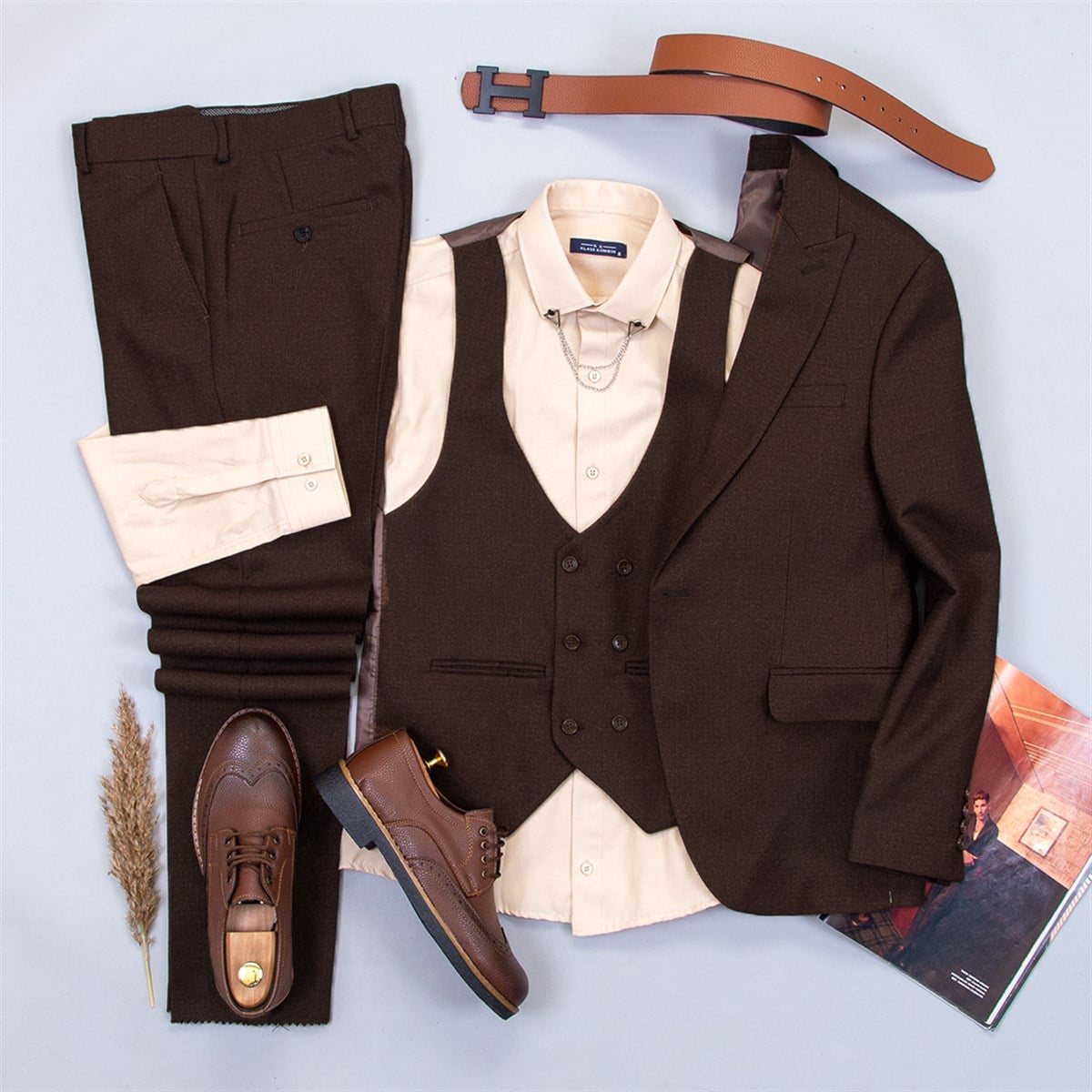 Kahve Takım Elbise Kombini