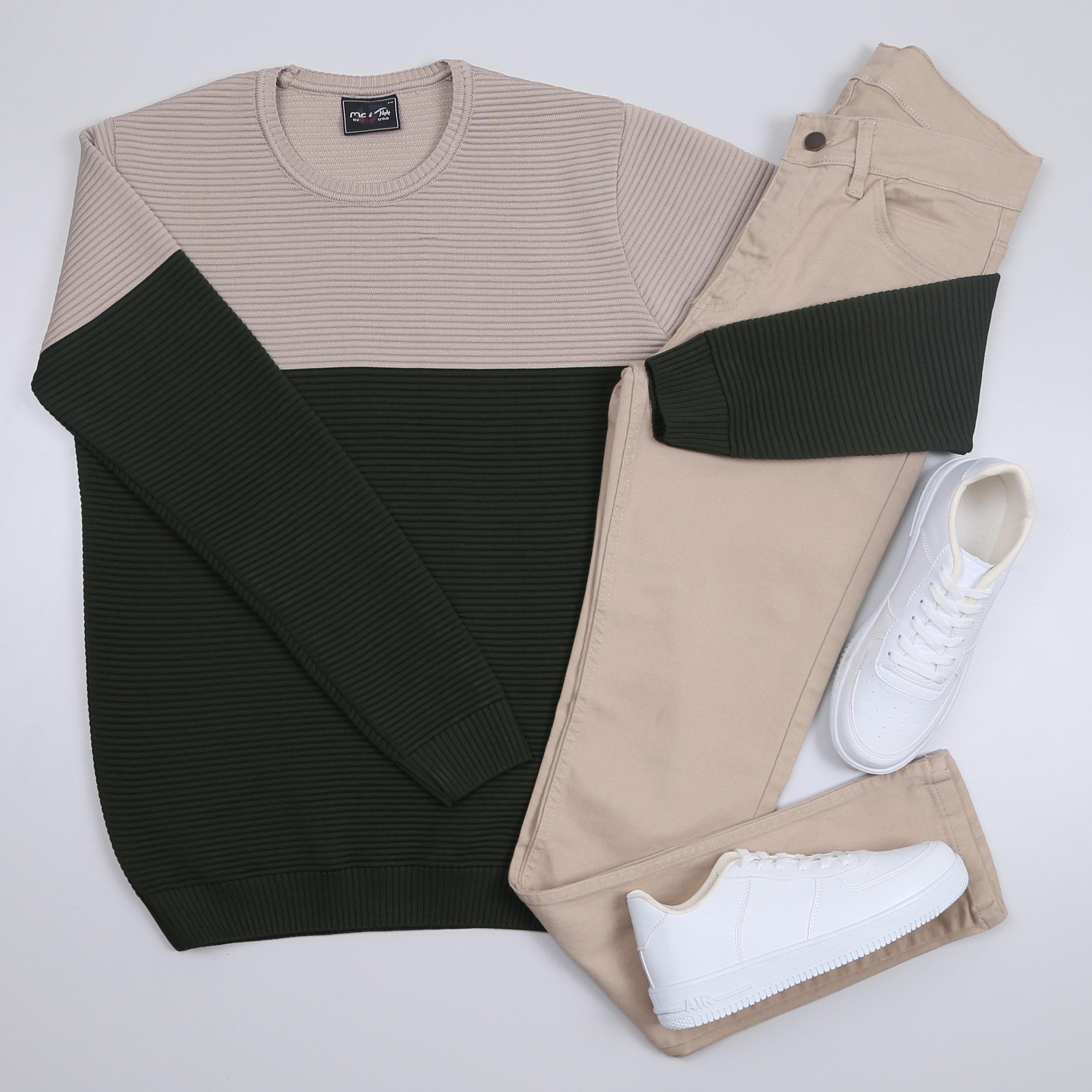 Karışık triko kazak bej kot Pantolon