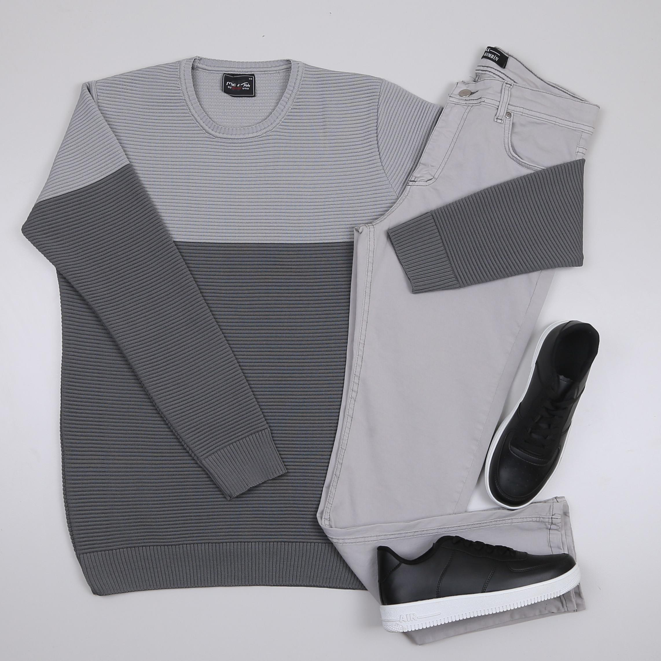Karışık triko Kazak Gri kot Pantolon