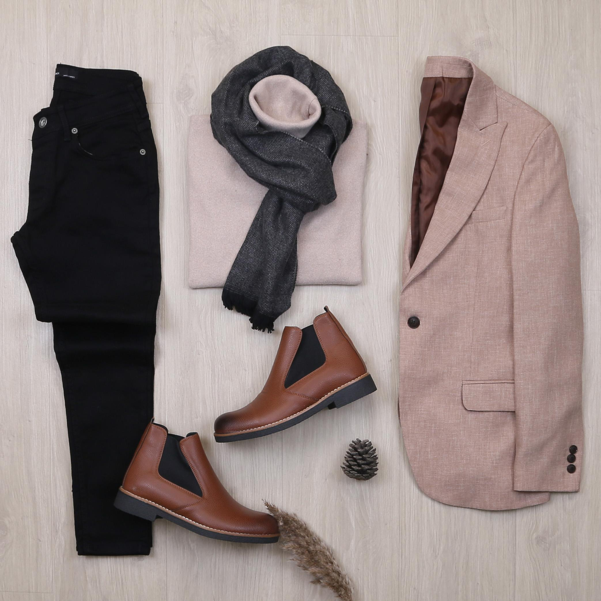 Koyu Bej Blazer Ceket Boğazlı Body Pantolon Bot Kombin