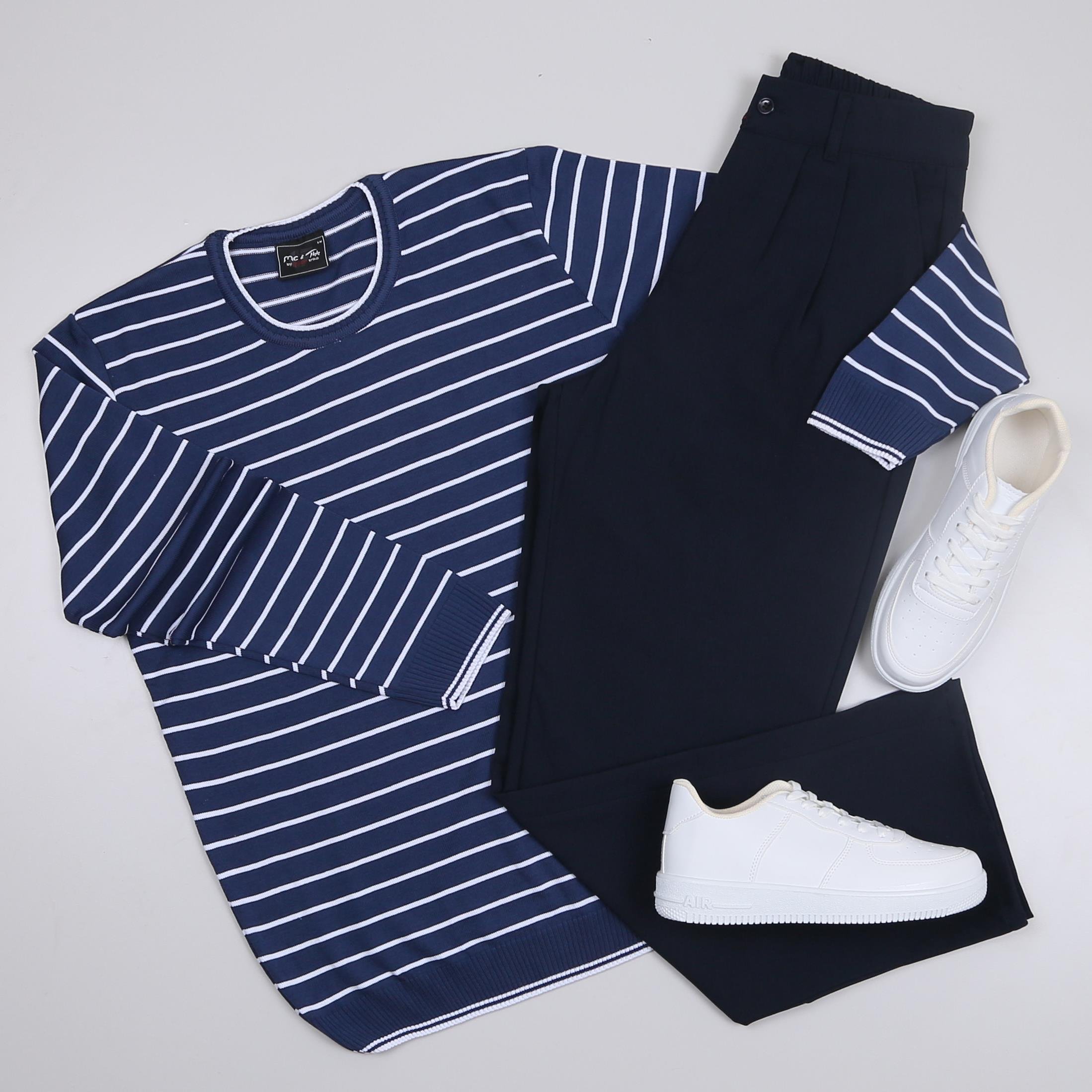 Lacivert Çizgili triko Baggy Lacivert kumaş Pantolon