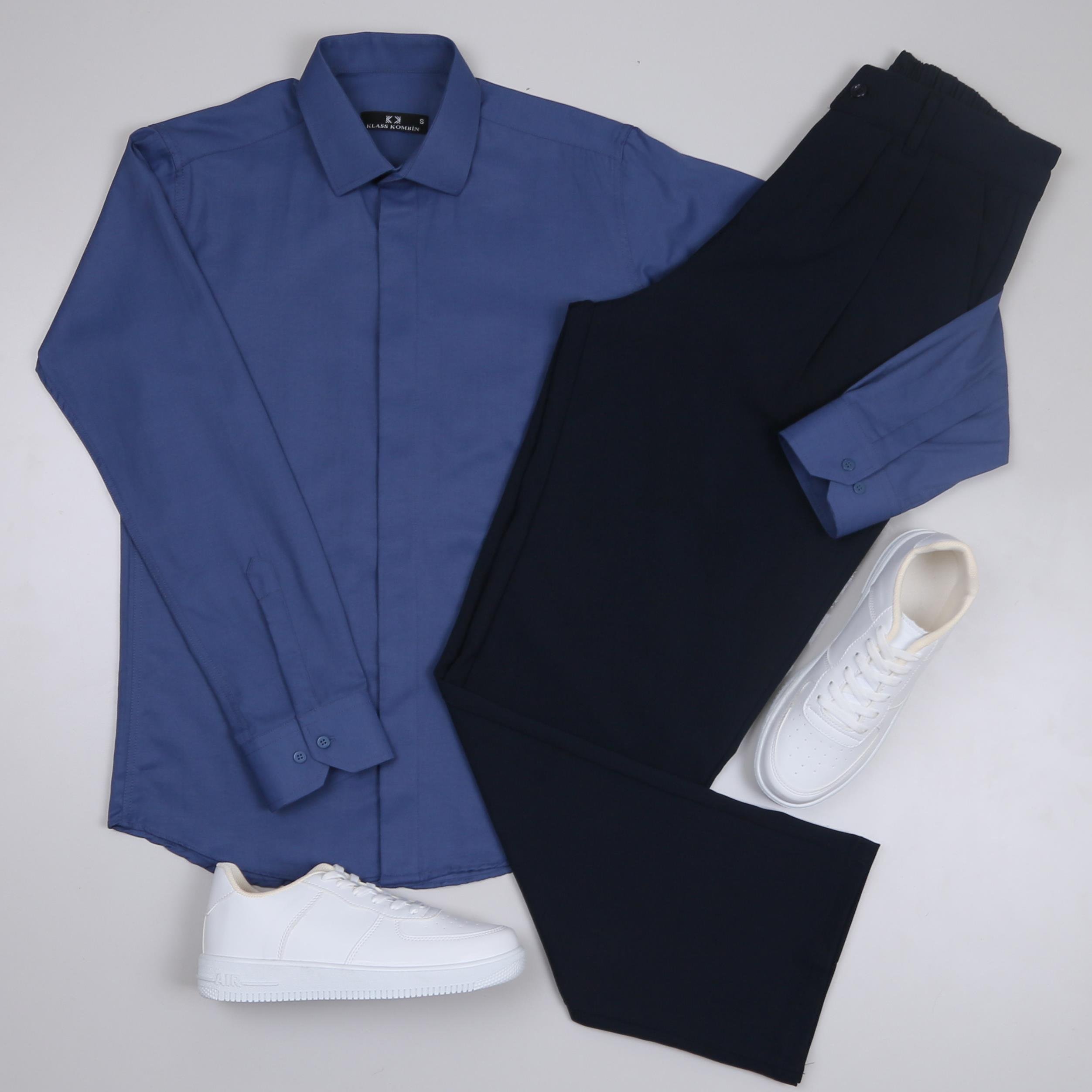 Lacivert Gömlek Baggy Lacivert kumaş Pantolon