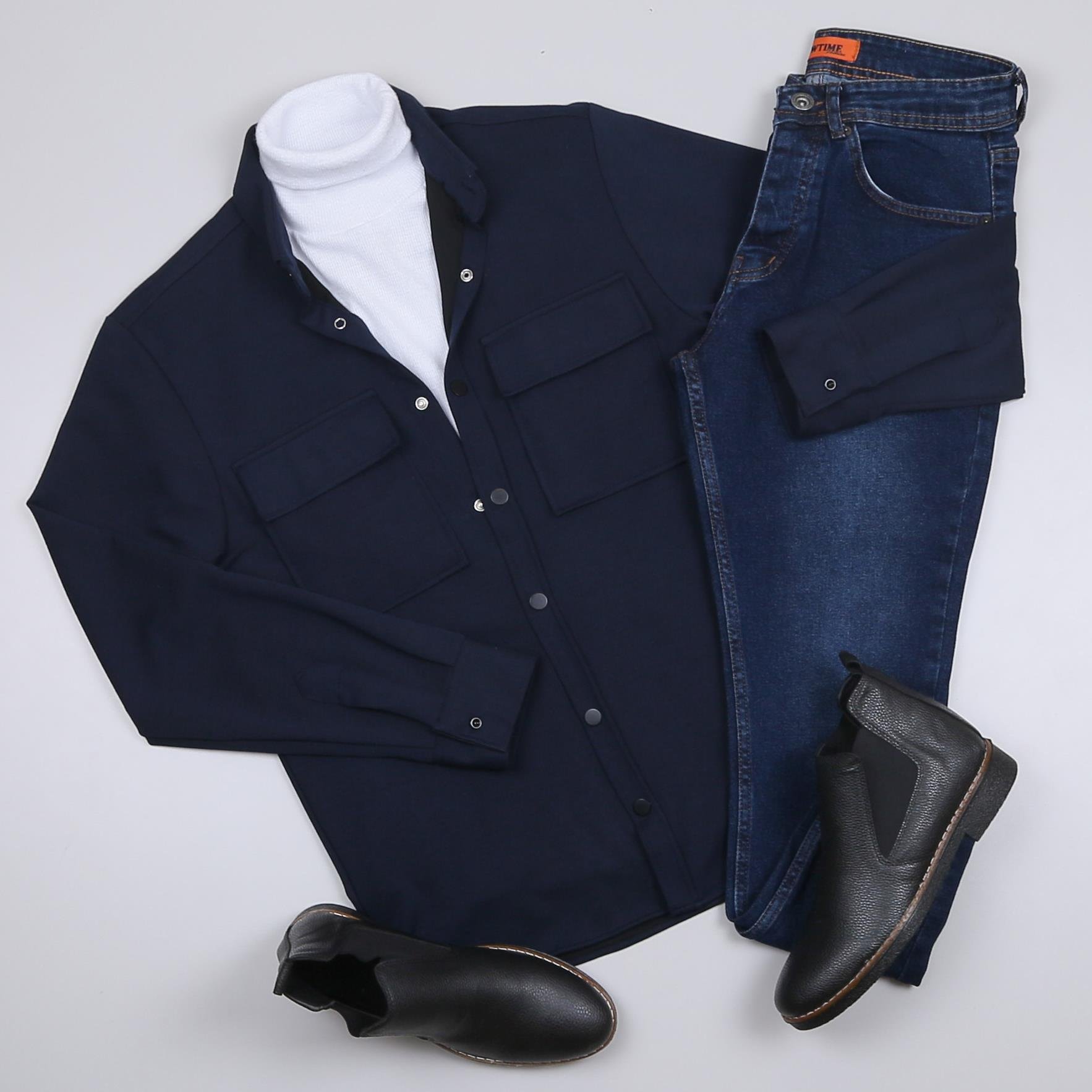 Lacivert Kaşe Gömlek Boğazlı Body Pantolon Bot Kombin
