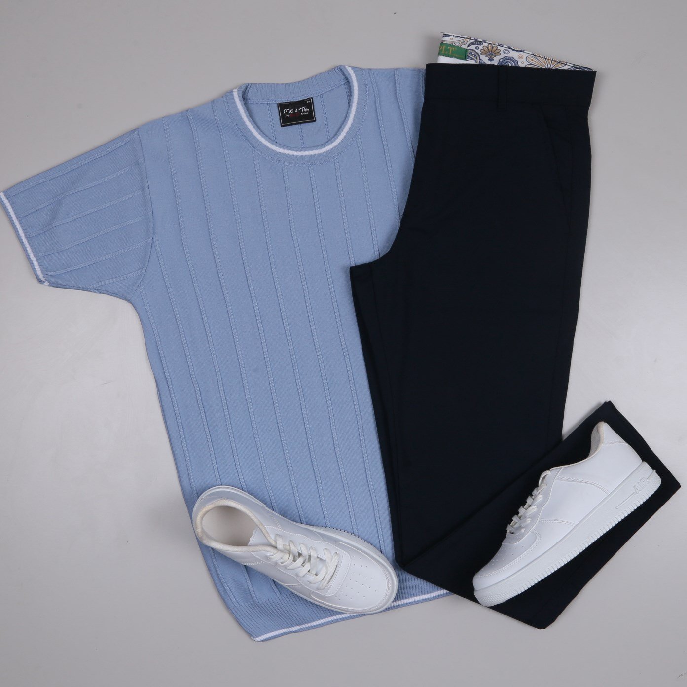mavi bisiklet yaka Triko Polo Yaka Tişört lacivert kumaş pantolon  ayakkabı Kombin