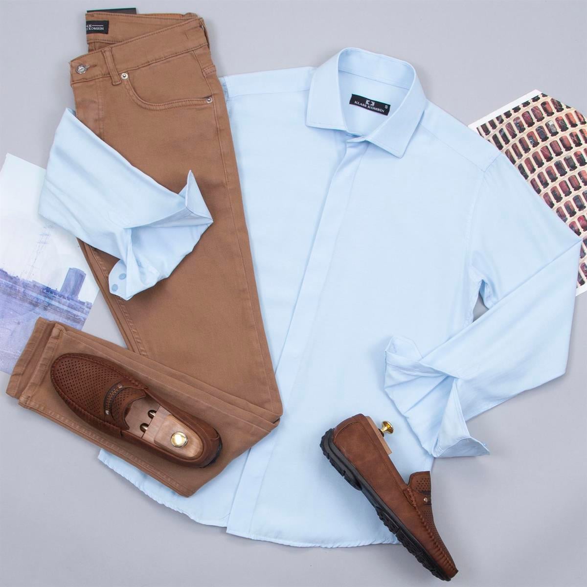Mavi Gömlek Pantolon Ayakkabı Kombin