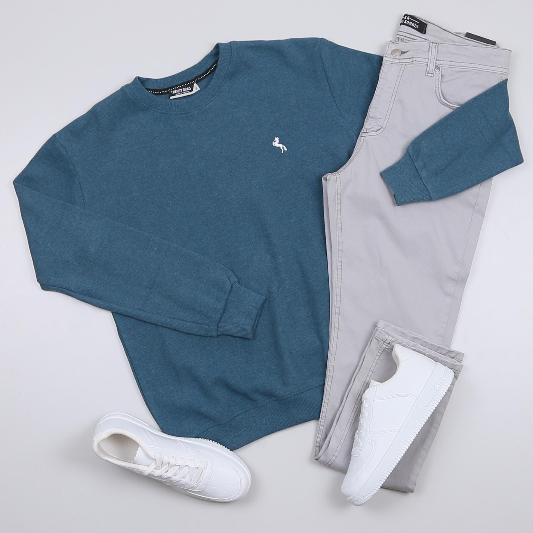 Mavi Kazak Kot Pantolon Ayakkabı Kombini
