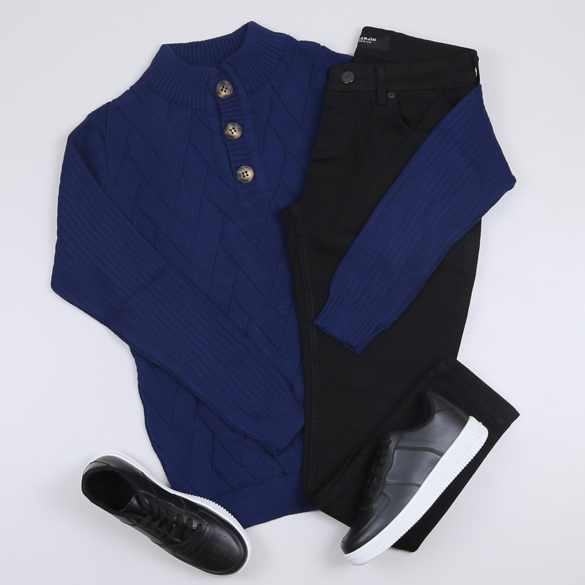 Sax Mavi Triko Kazak Kot Pantolon Ayakkabı Kombini