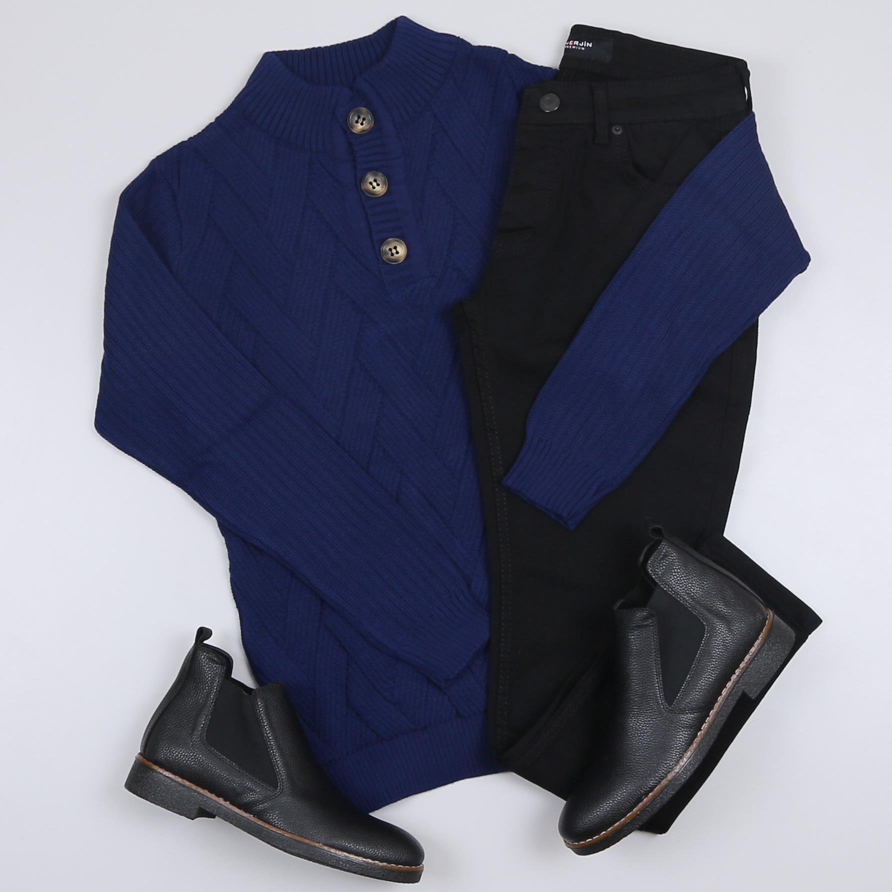 Sax Mavi Triko Kazak Kot Pantolon Bot Kombini