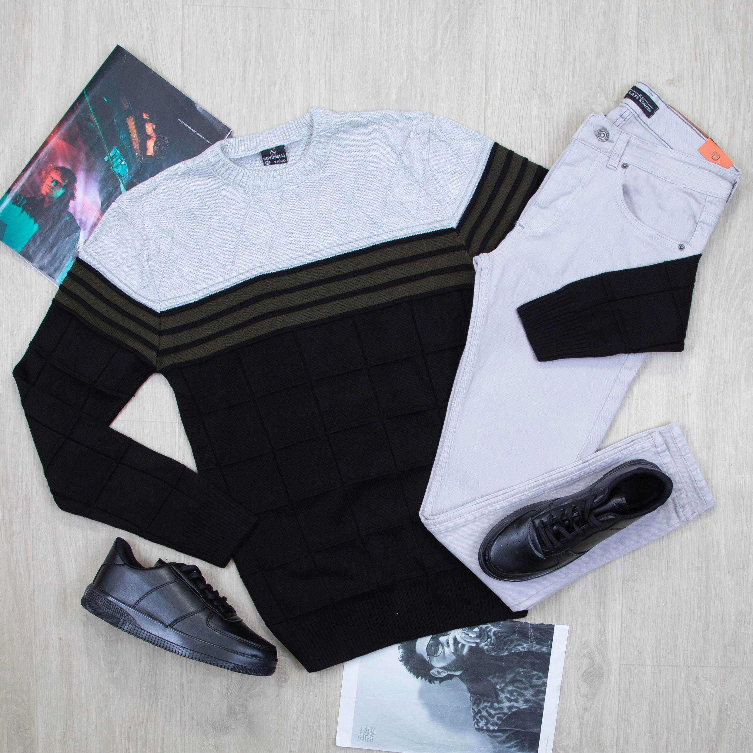 Şeritli Kazak Pantolon Ayakkabı Kombin