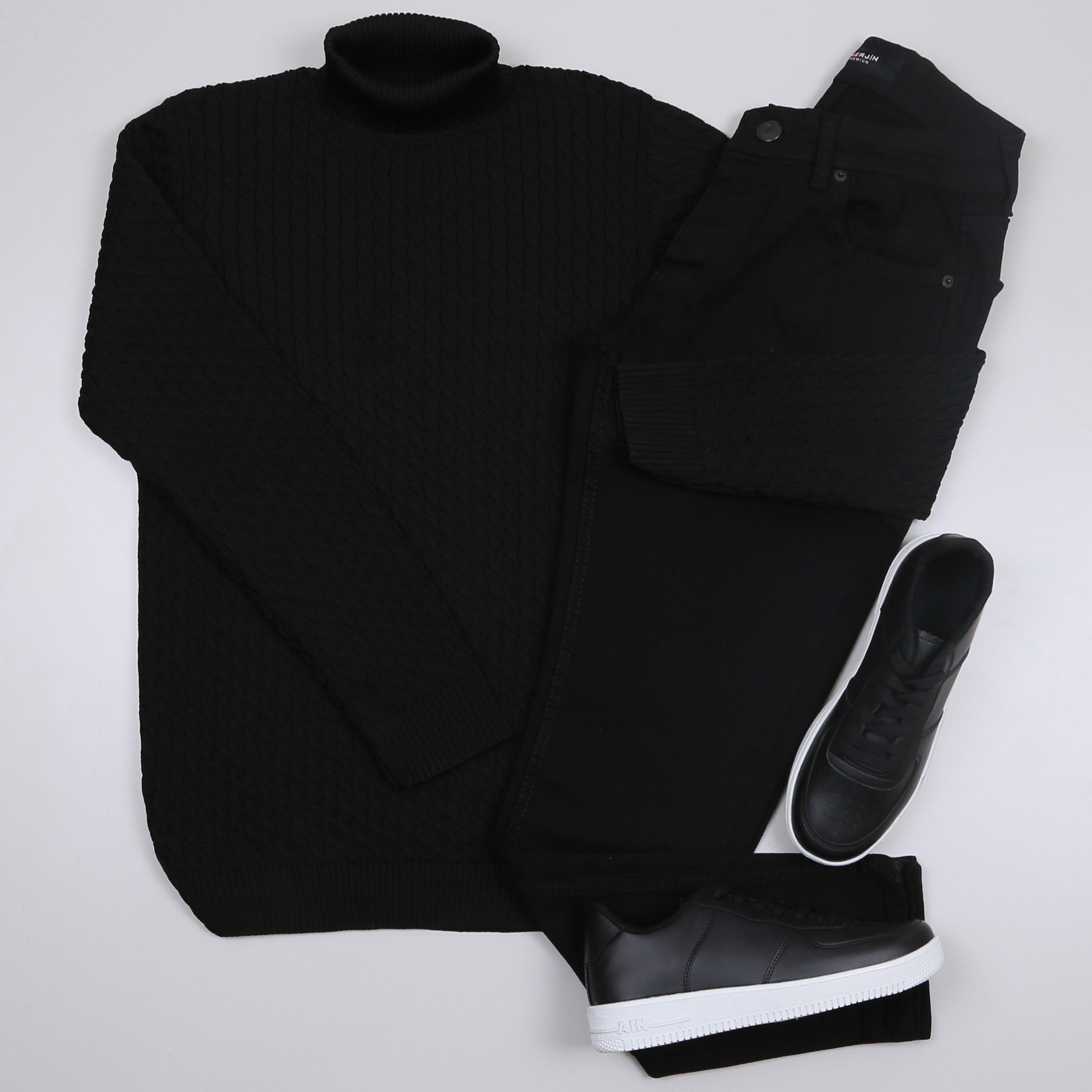 Siyah Boğazlı triko siyah kot Pantolon